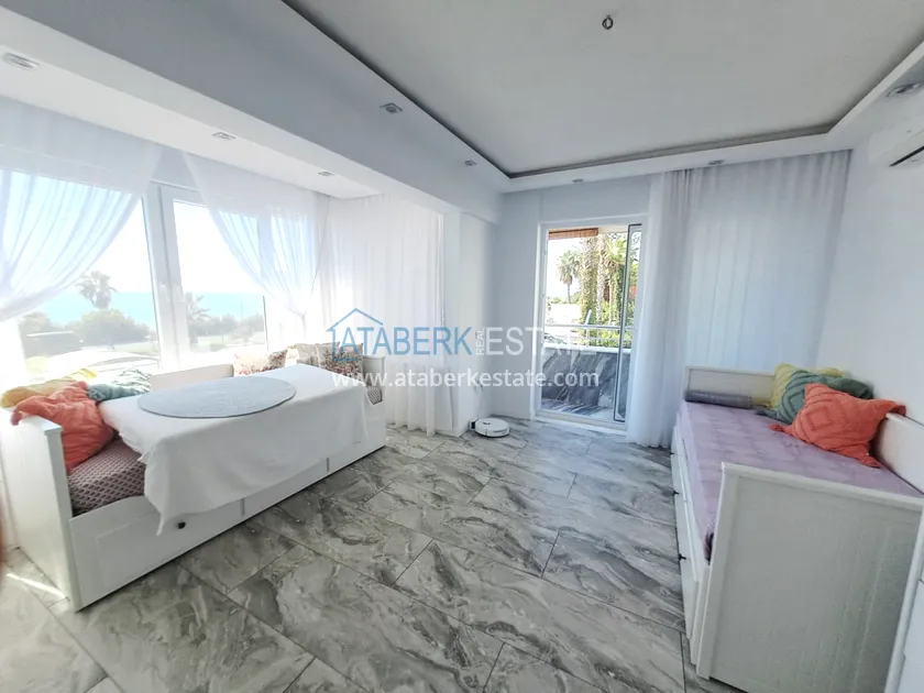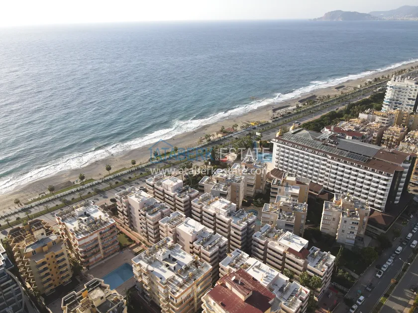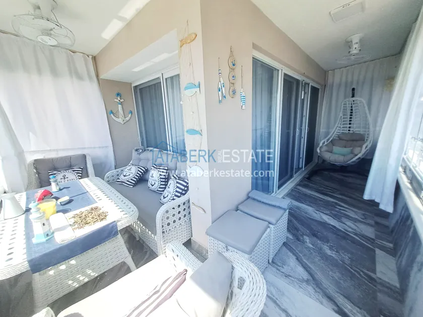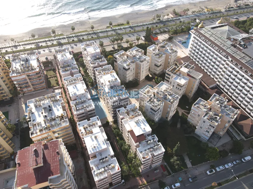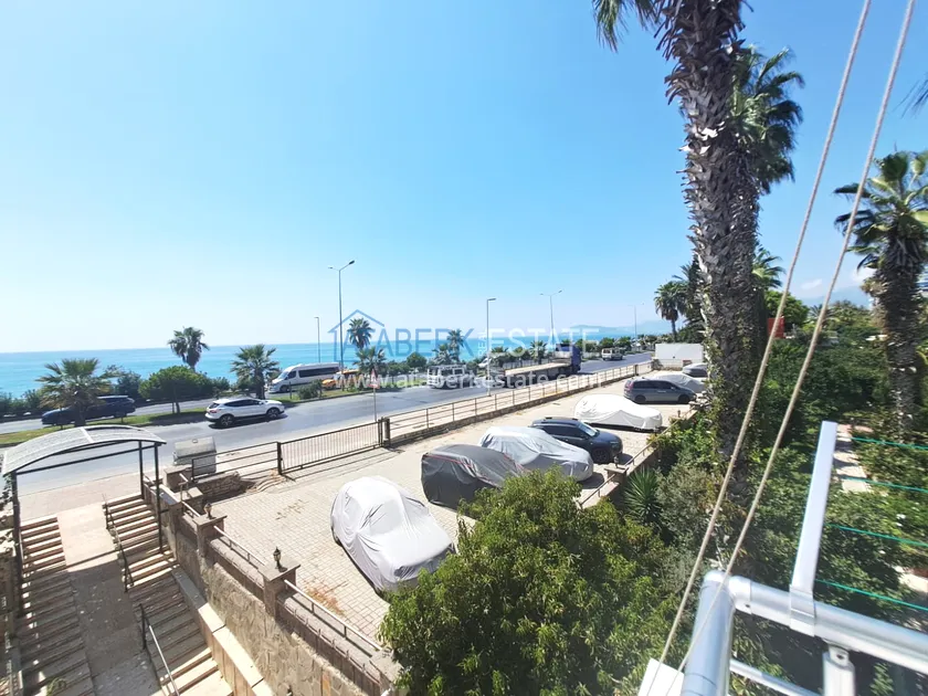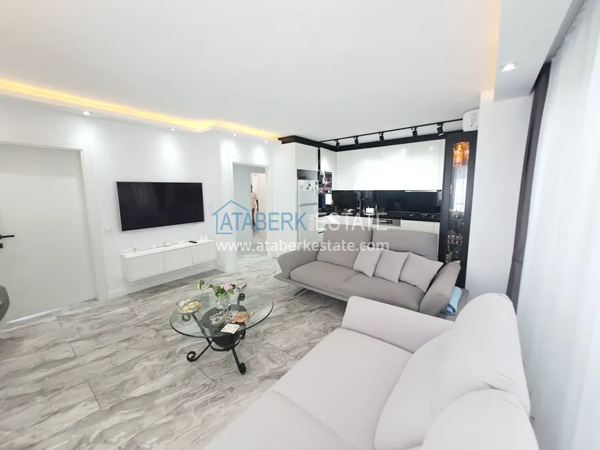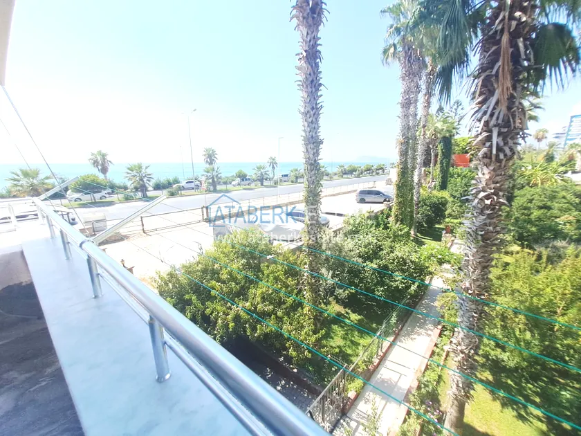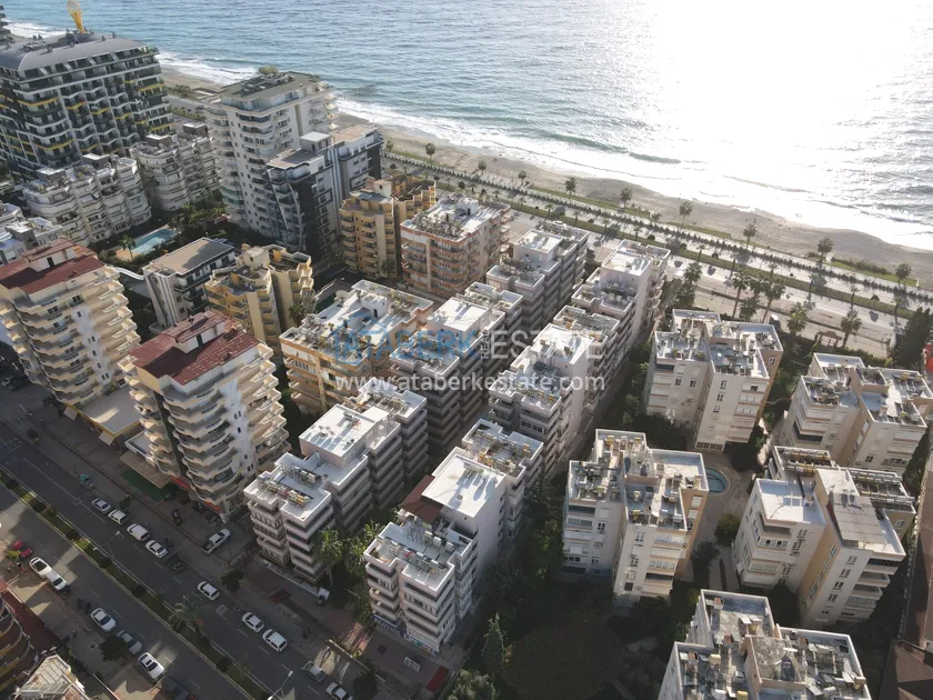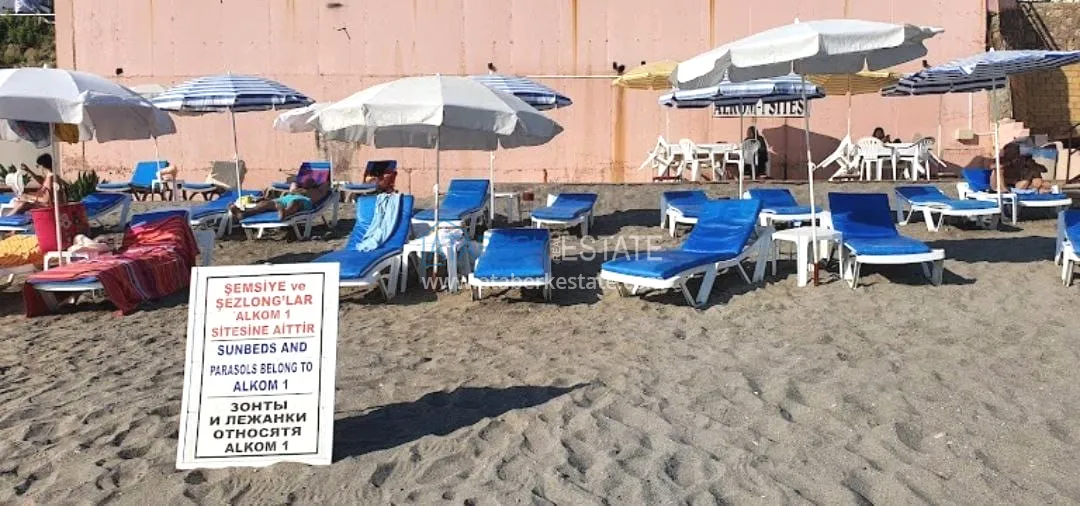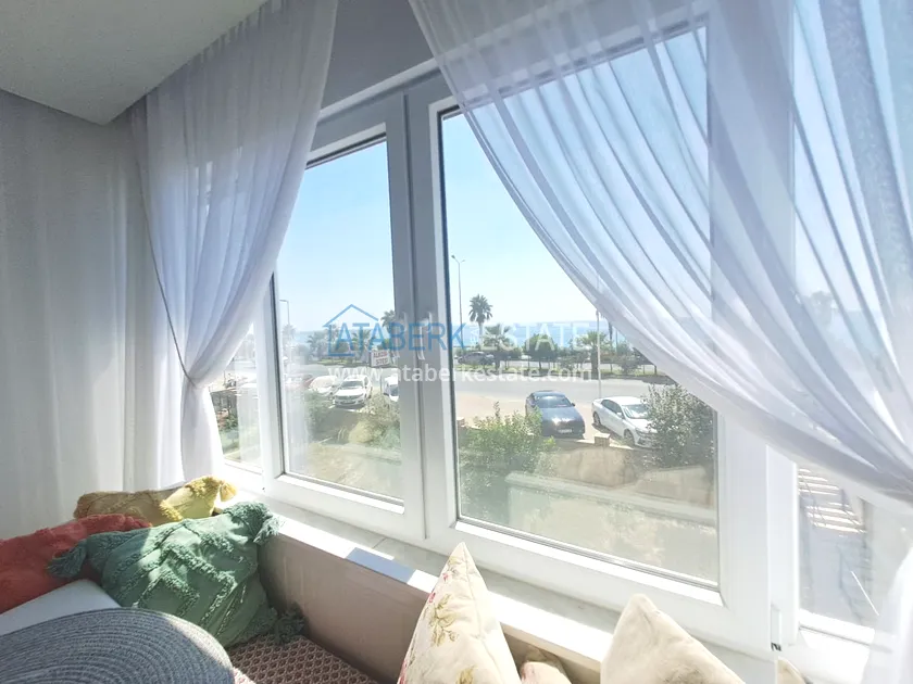 Апартаменты планировки 2+1 площадью 90 м² с прямым выходом к морю. Планировка полностью изменена: все стены демонтированы и заново выстроены, благодаря чему квартира приобрела современный функциональный облик. Внутри предусмотрены прихожая, просторная гостиная с кухонной зоной, две спальни, ванная комната и два балкона, один из которых застеклён. Из окон открывается вид на зелёный сквер, крепость Кале и панораму Средиземного моря — даже из окна в ванной можно любоваться морем. В квартире установлена удобная мебель с продуманными системами хранения.