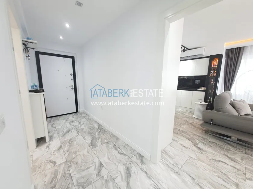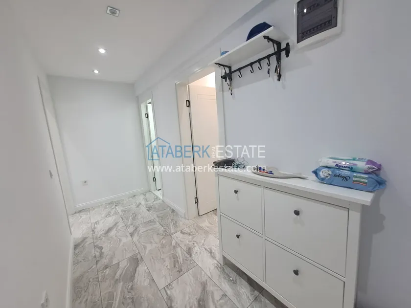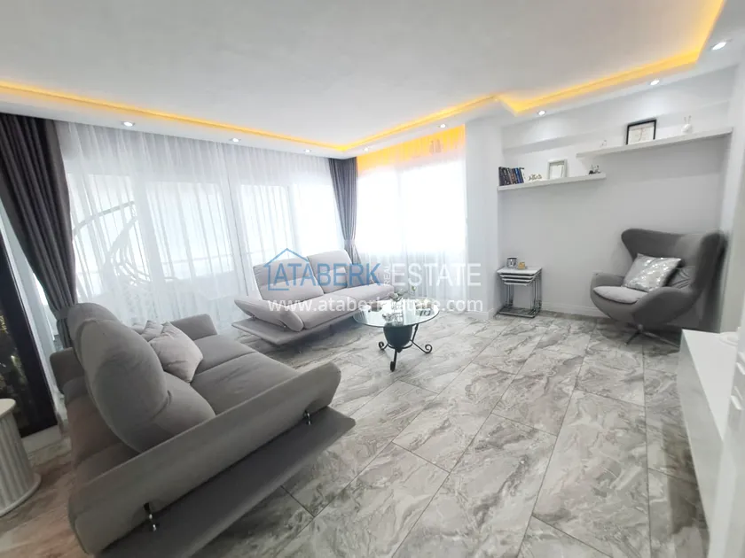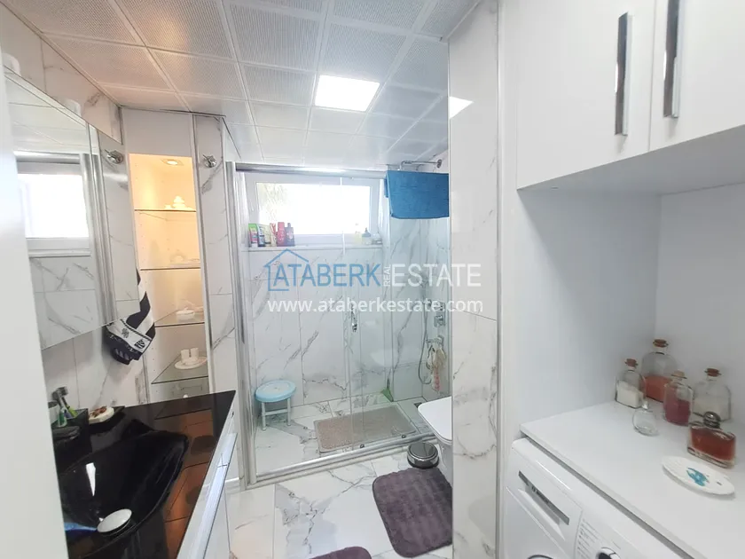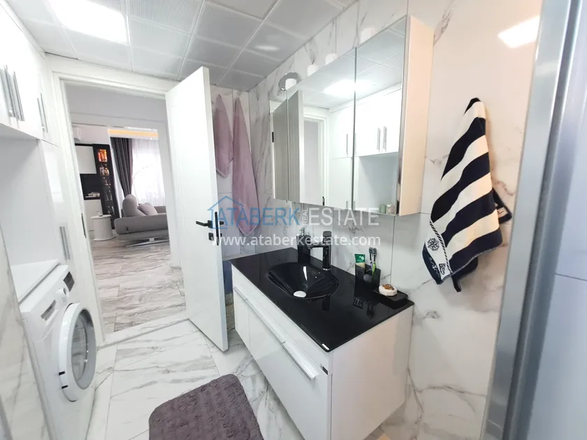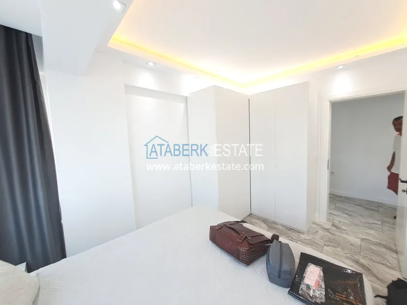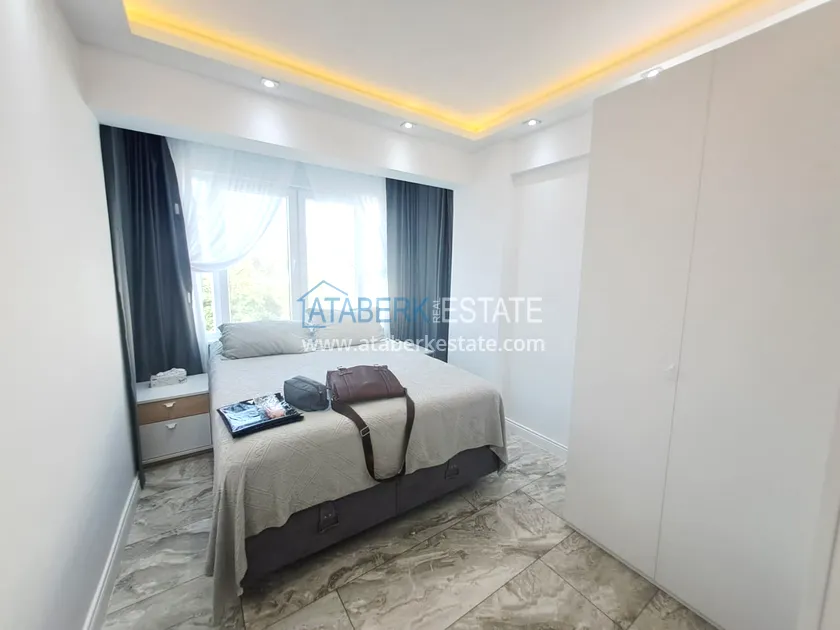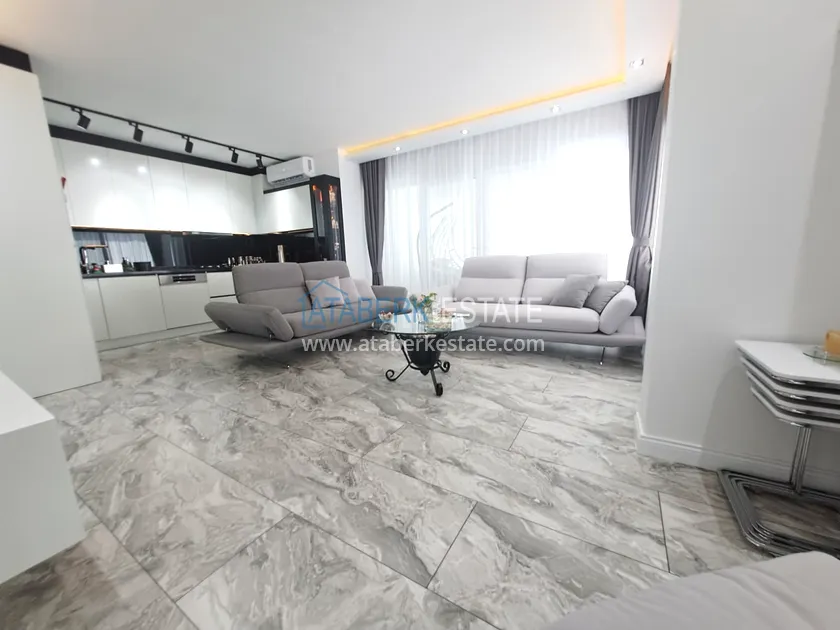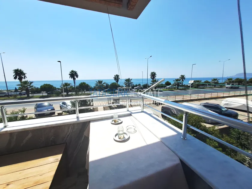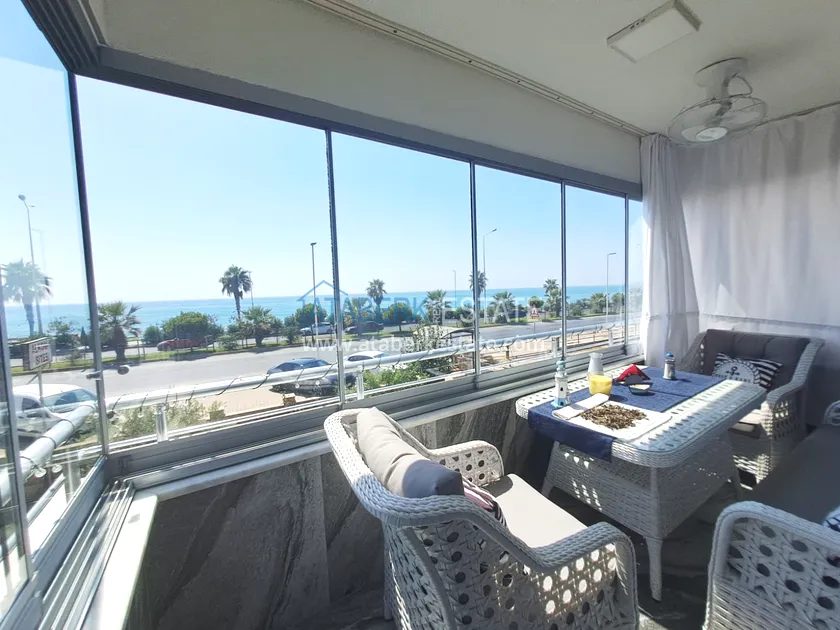 Апартаменты планировки 2+1 площадью 90 м² с прямым выходом к морю. Планировка полностью изменена: все стены демонтированы и заново выстроены, благодаря чему квартира приобрела современный функциональный облик. Внутри предусмотрены прихожая, просторная гостиная с кухонной зоной, две спальни, ванная комната и два балкона, один из которых застеклён. Из окон открывается вид на зелёный сквер, крепость Кале и панораму Средиземного моря — даже из окна в ванной можно любоваться морем. В квартире установлена удобная мебель с продуманными системами хранения.