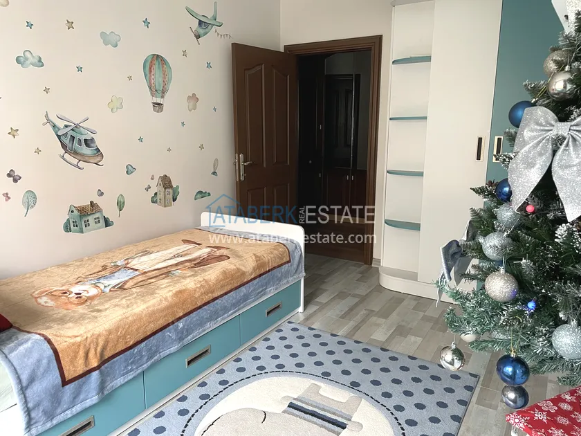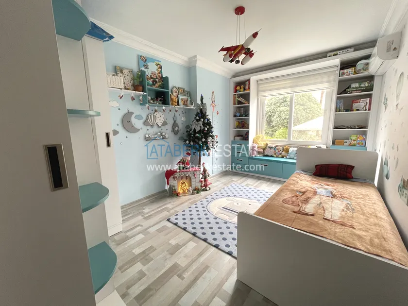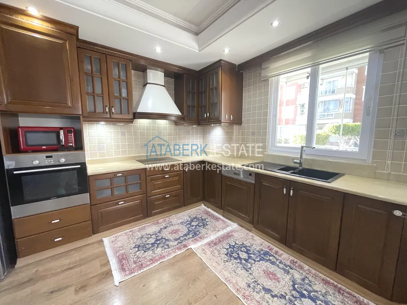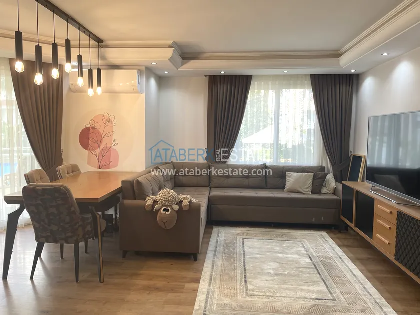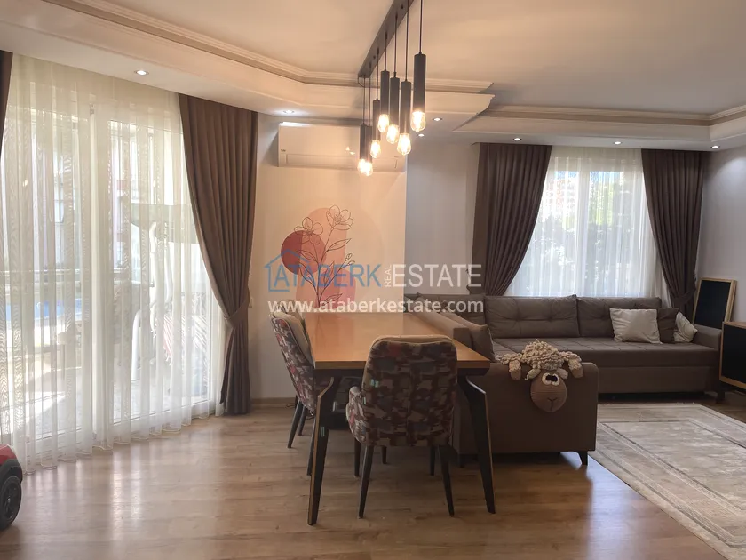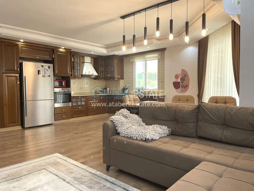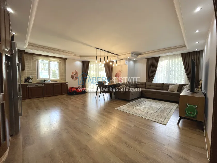 Квартира планировки 2+1 общей площадью 140 м² расположена на первом этаже и ориентирована на северо-западную сторону. Пространство продумано для комфортного проживания: салон, кухня, две спальни, две ванные комнаты, два остекленных балкона и кладовая. Апартаменты полностью меблированы, что позволяет использовать объект сразу после покупки без дополнительных вложений.