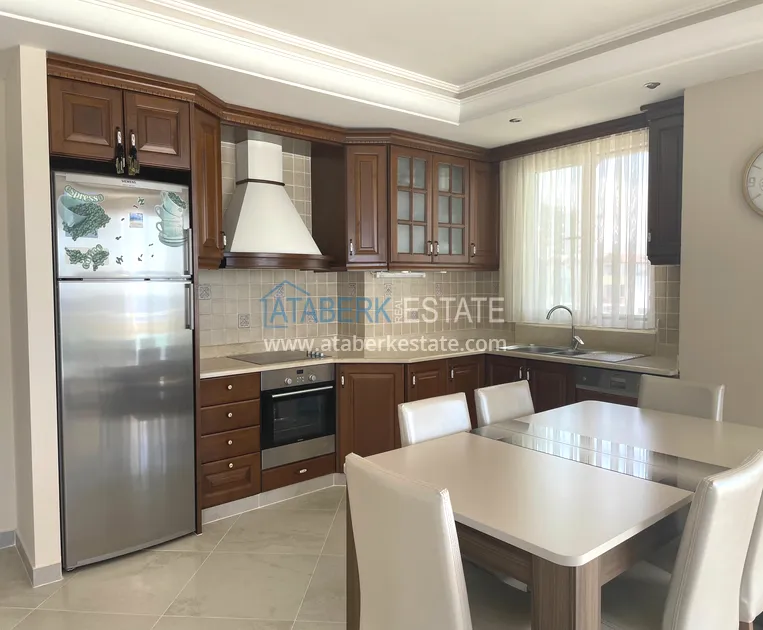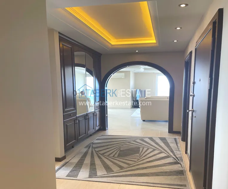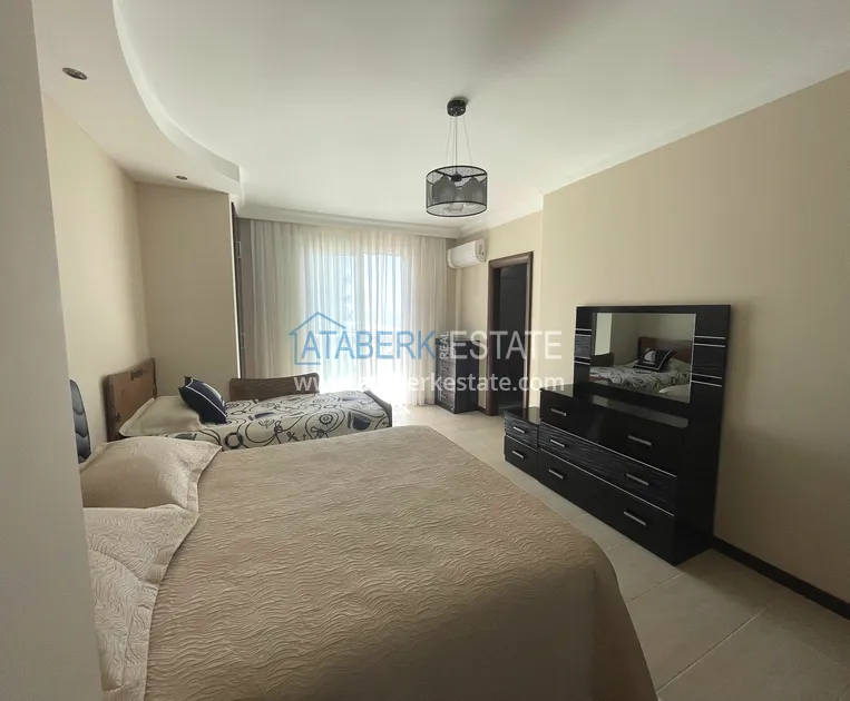 Квартира планировки 2+1 общей площадью 140 м² расположена на 5 этаже и ориентирована на юго-восток, что обеспечивает хорошую инсоляцию и комфортный микроклимат в течение дня. Планировка включает салон, кухню, две спальни, две ванные комнаты, два остекленных балкона и кладовую. Апартаменты полностью меблированы и готовы к использованию сразу после покупки, без необходимости дополнительных вложений.