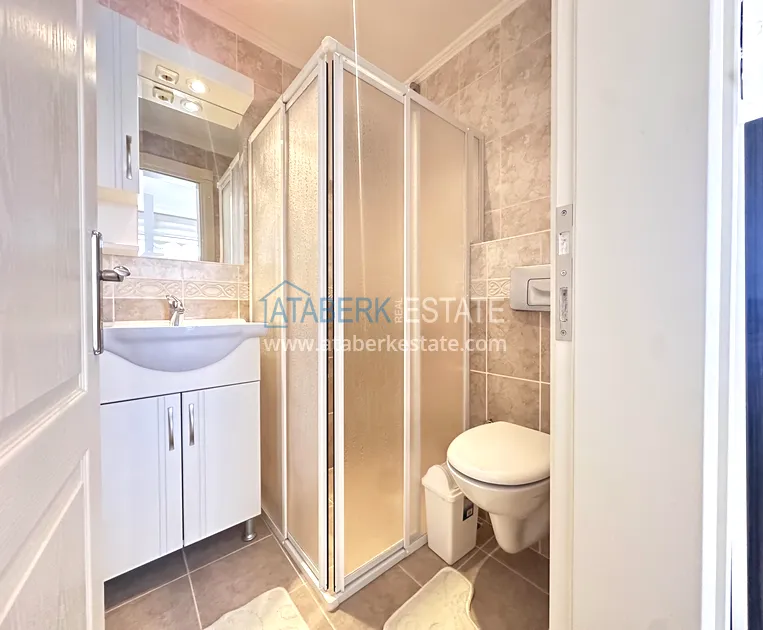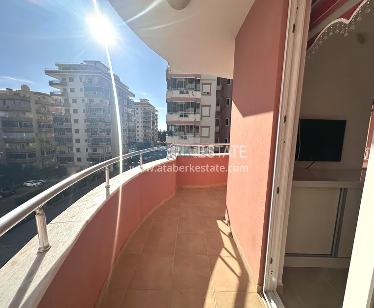 Квартира планировки 2+1 общей площадью 120 м² расположена на 4 этаже и предлагается к продаже с мебелью. Планировка включает гостиную с кухней открытого типа, две спальни, две ванные комнаты и три балкона, что делает пространство особенно светлым и хорошо проветриваемым. Ориентация сразу на восток, юг и север обеспечивает естественное освещение в течение всего дня. С балконов открывается боковой вид на море, который подчёркивает курортный характер недвижимости и добавляет ей ценности.