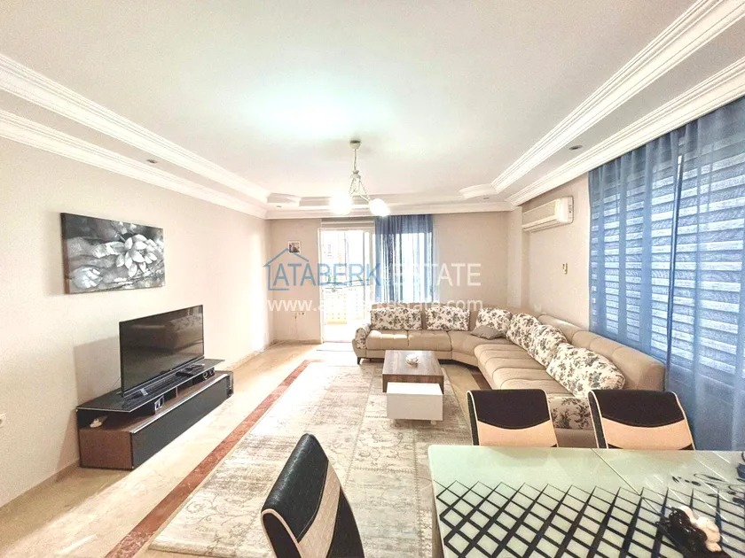 Квартира планировки 2+1, расположена на 1 этаже, общей площадью 100 м². Апартаменты продаются с мебелью. Планировка включает гостиную с кухней открытого типа, две спальни, 2 санузла и 2 балкона.