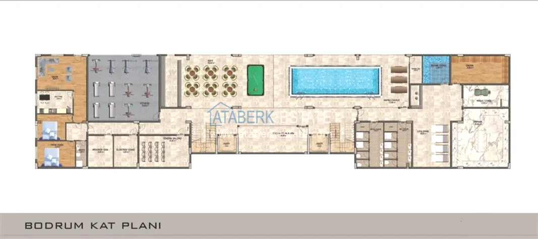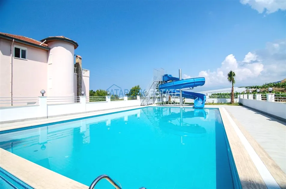 Инфраструктура комплекса: открытый бассейн, турецкая баня, сауна, массажные кабинеты, фитнес-центр, ресторан, аквапарк, детская игровая площадка, детская игровая комната, беседки, охрана, сигнализация, камеры видеонаблюдения, парковка, бесплатный Wi-Fi.