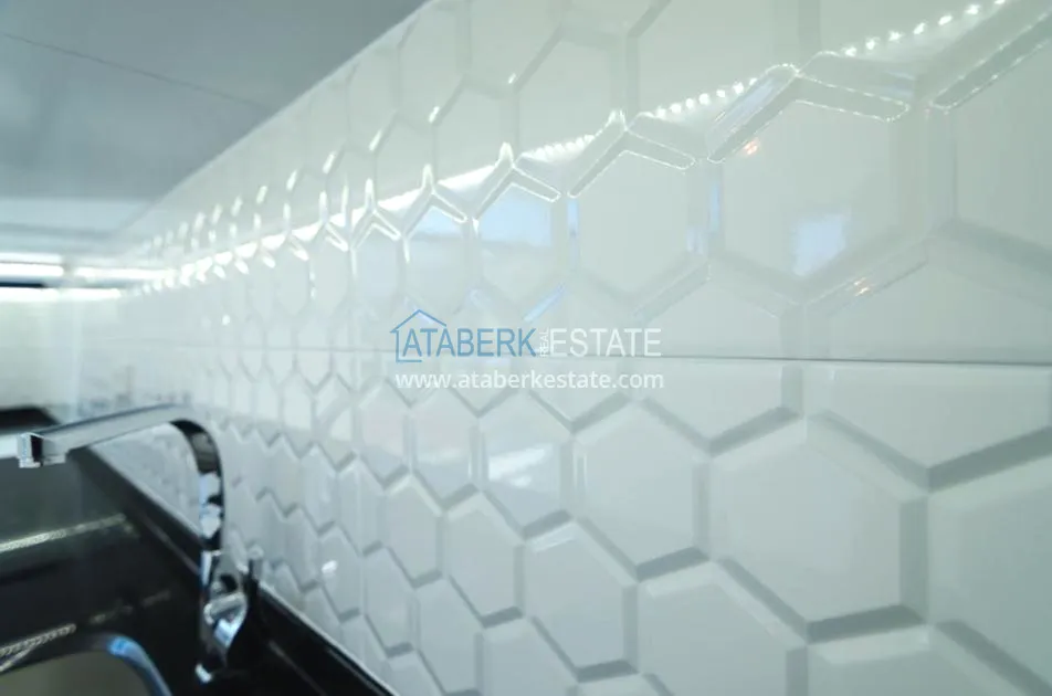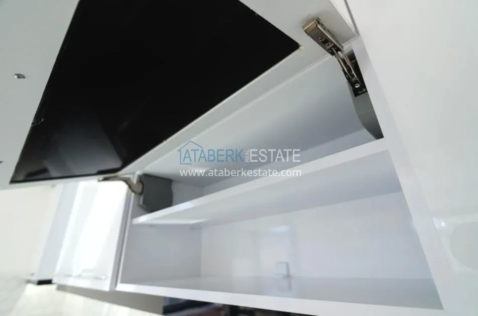 В квартирах: чистовая отделка, стены выкрашены водостойкой - атласной краской, напольная керамическая плитка первого класса, влага, тепло и звукоизоляция, видеодомофон, выходы под кондиционеры, потолочный декор, входная дверь из стали, межкомнатные двери лаковые, окна алюминиевые с двойным остеклением, не нагревается, центральная система спутникового телевидения, в ванных комнатах установлена сантехника высокого качества, панорамные окна в пол, встроенная мебель в кухонной зоне.