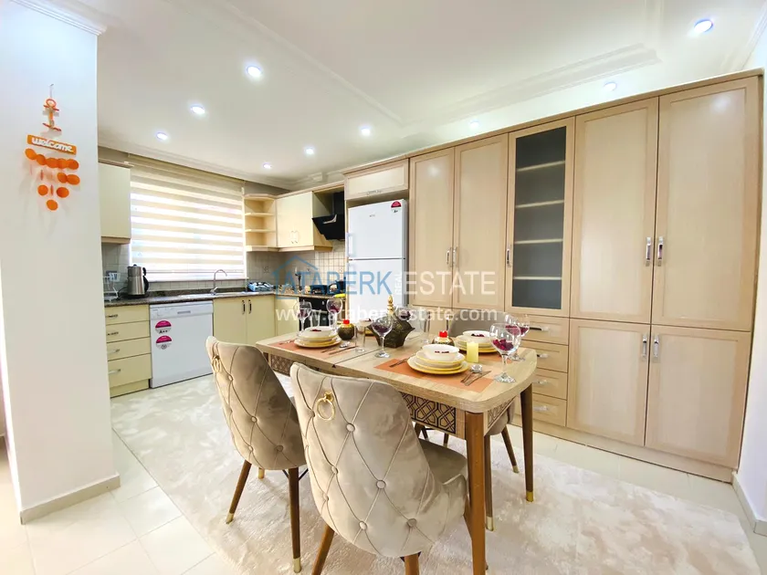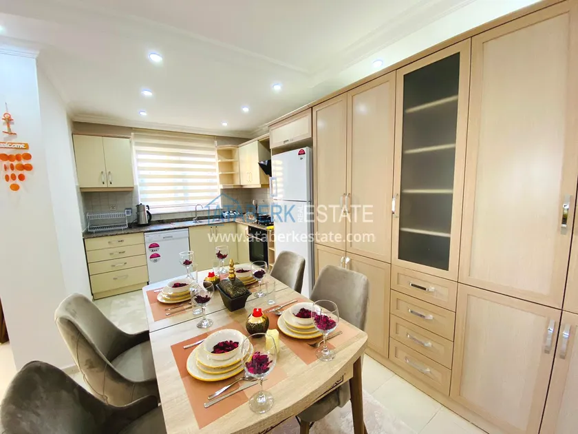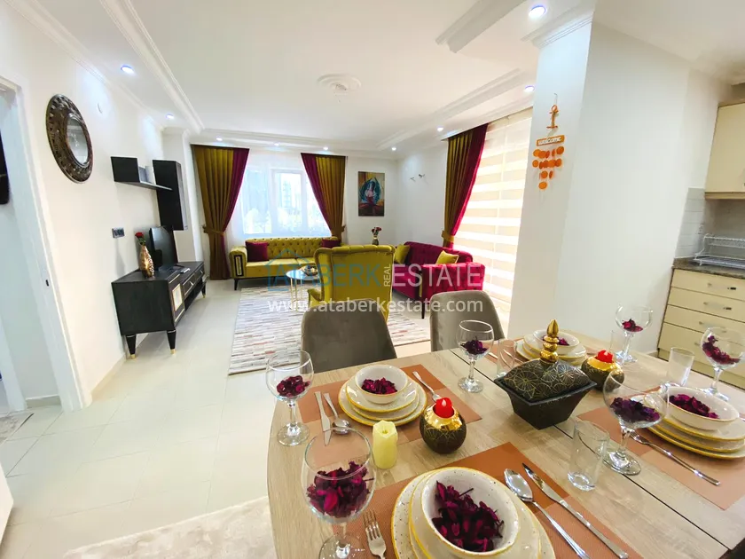 Апартаменты расположены в небольшом жилом комплексе, где есть ухоженная территория и внутренняя инфраструктура. Айдат 120 лир в месяц. Находится комплекс в очень популярном районе Алании – Махмутлар. Комфортная жизнь и дружелюбие местного населения привлекло многих иностранных жителей приобрести здесь недвижимость. Красивый прибрежный курортный городок славится своей социальной инфраструктурой: магазины, рестораны, кофейни, пекарни, мясные и овощные лавки, банки и банкоматы, лечебные учреждения, школы и детские сады, игровые детские площадки и прогулочные аллеи, три раза в неделю приезжает фермерский рынок, развитое транспортное сообщение. Наличие всего этого делает жизнь и отдых приятным и комфортным.