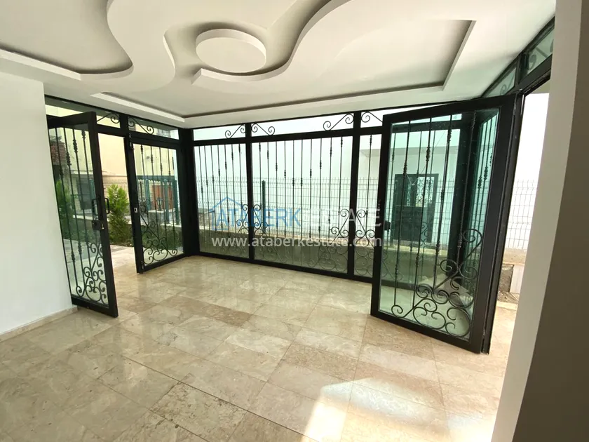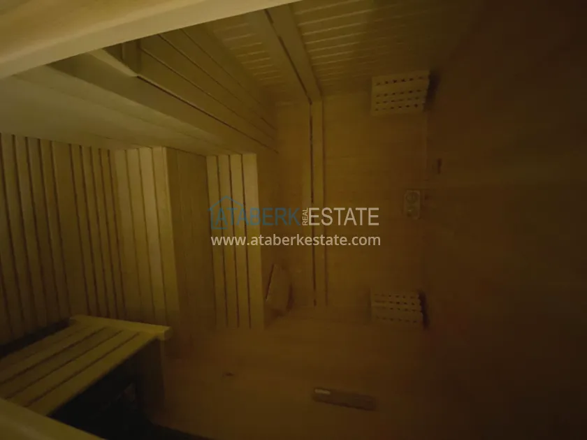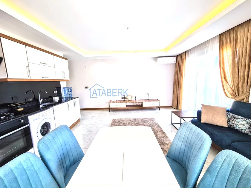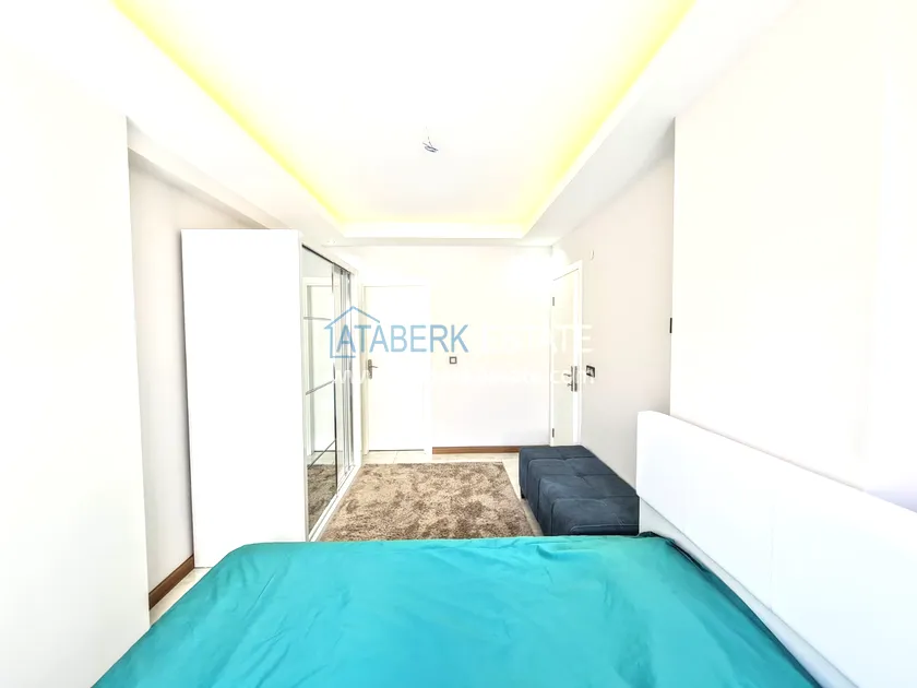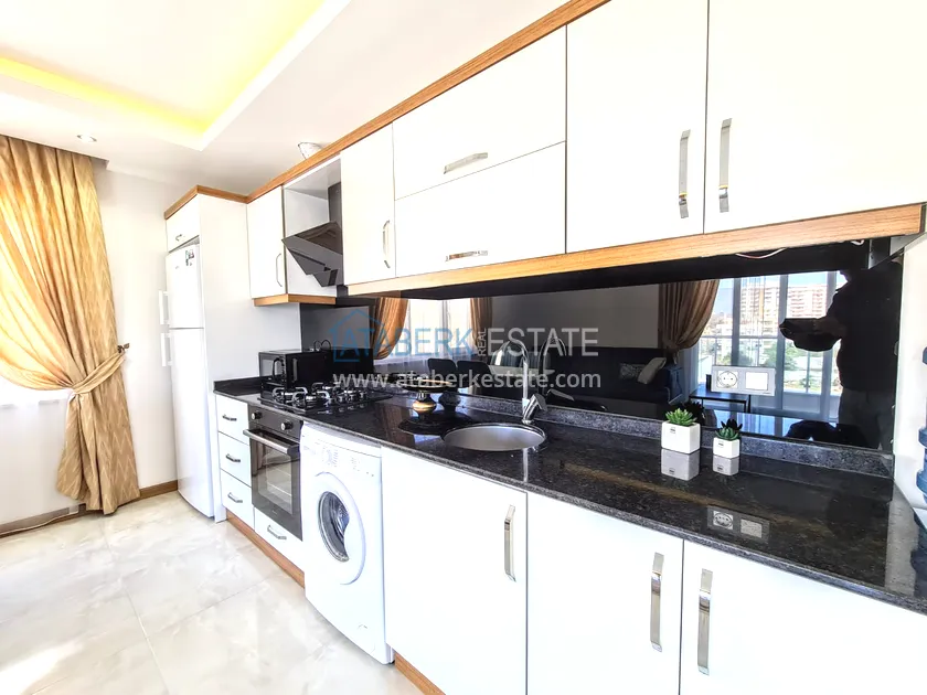 Квартира находится на 3 этаже, общая площадь 108 кв. м, планировка 2+1, где одна две спальни, гостиная, открытая кухня американского типа, две ванные комнаты и балкон. Апартаменты выставлены на продажу с полным комплектом мебели и бытовой техники.