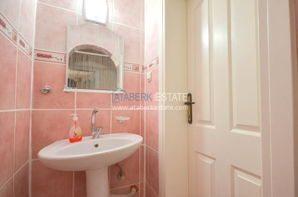 Квартира находится в небольшом жилом комплексе городского типа. На первом этаже дома расположена коммерческое помещение. Комплекс не располагает богатой инфраструктурой, что в свою очередь означает низкую стоимость айдата, всего 25 лир в месяц. Имеет ухоженную территорию и бассейн, а также прекрасное расположение - в районе вторничного рынка, всего в 50 метрах от проспекта Барбаросса, при этом улочка, где расположен дом всегда тихая и ухоженная. До побережья Средиземного моря всего 3-4 минуты ходьбы.