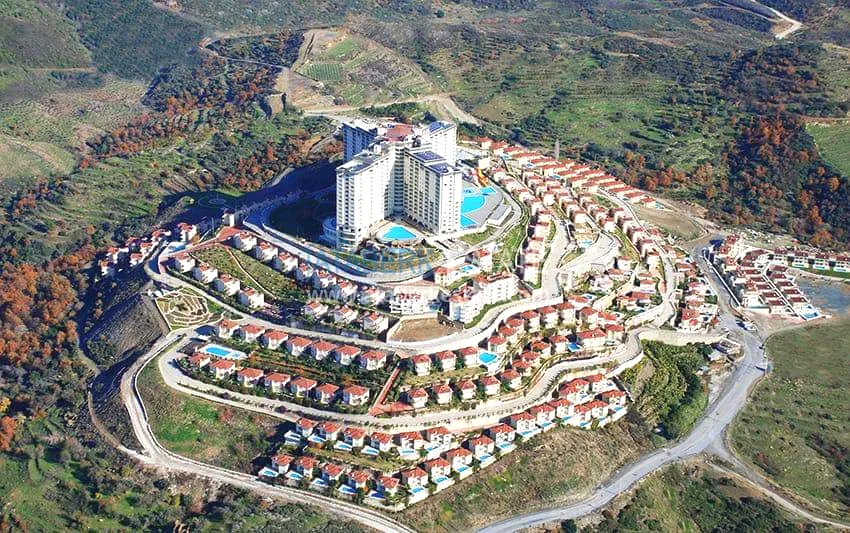 Апарт-вилла является частью жилого комплекс, который считается крупнейшим проектом на средиземноморском побережье Турции и признан как один из лучших жилых комплексов. Большая территория, комфорт пятизвёздочного отеля и инфраструктура поражает. Владельцы квартир могут пользоваться любым сервисом отеля. Масштабный жилой комплекс расположен в живописной местности у подножья величественных гор, вокруг много деревьев, чистый горный воздух, красивые пейзажи, спокойный и размеренный ритм жизни, нарушаемый лишь пением птиц.