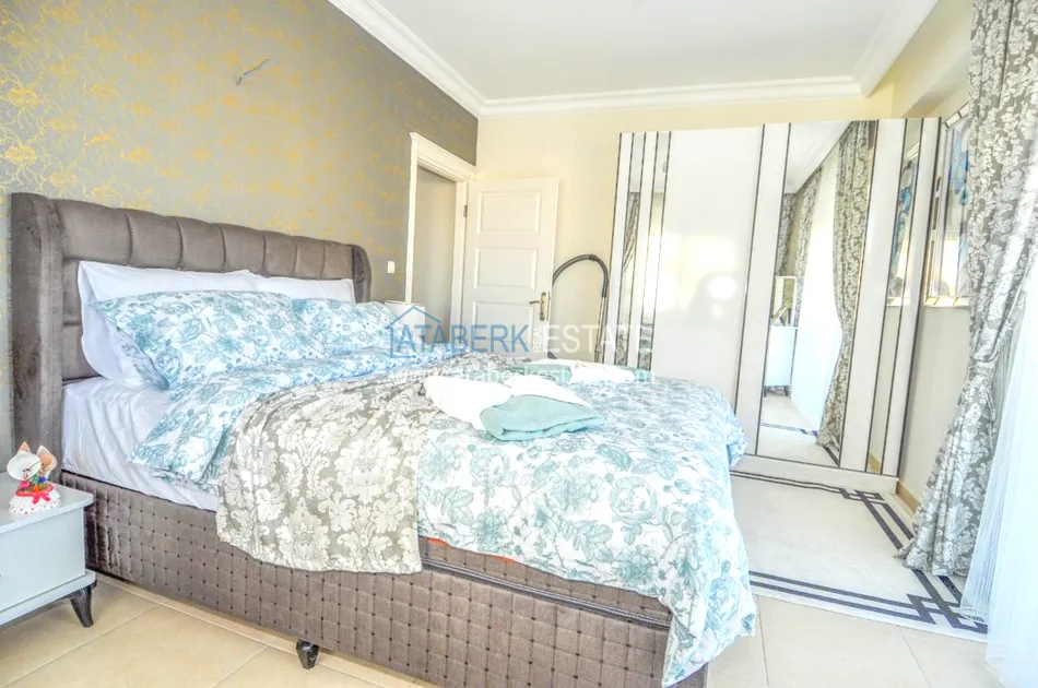 Квартира угловая, планировки 2+1, общей площадью 140 м2, на которой расположены две спальные комнаты, салон, американского типа кухня, две ванные комнаты, одна из которых находится в мастер спальне. Апартаменты находятся на 2 жилом этаже (фактически на 4), ориентированы на юг, север и запад, имеют два балкона с видом на море, горы и город. В стоимость включена вся мебель и бытовая техника, все как на фото.