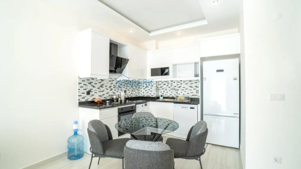 Апартаменты выставлены на продажу со всей мебелью, бытовой техникой и предметами интерьера. Общая площадь апартаментов составляет 55 кв. м, планировка 1+1, 5 этаж, южная сторона. В квартире гостиная, совмещенная с открытой кухней, спальня, ванная комната и балкон. Так как Вы покупаете уже меблированную квартиру, то вы экономите и время, и деньги на обустройство нового жилья.