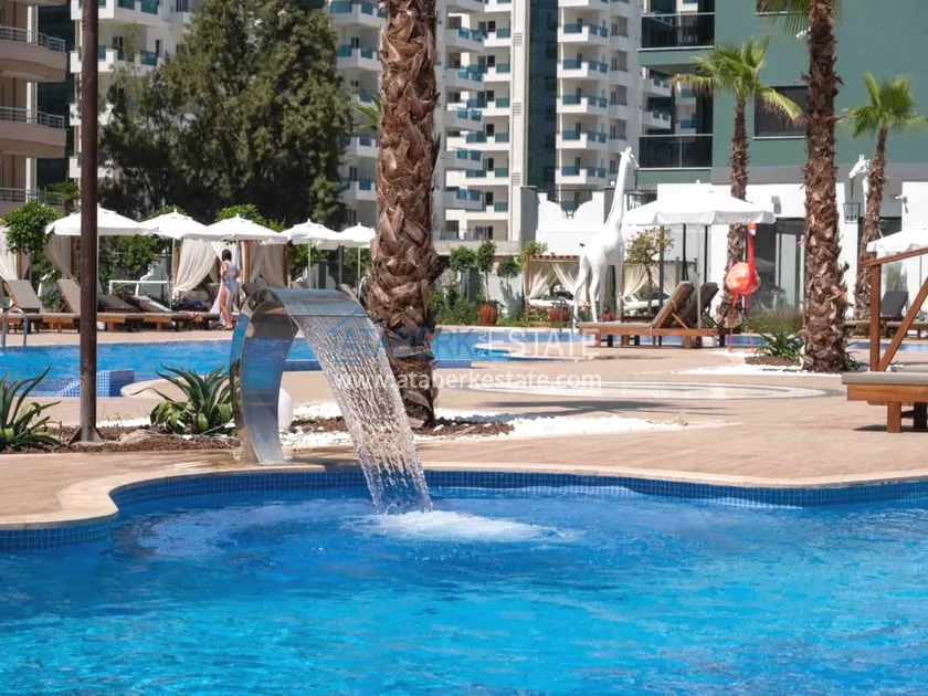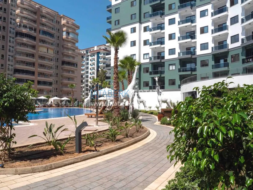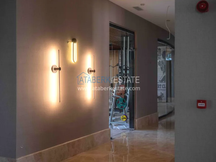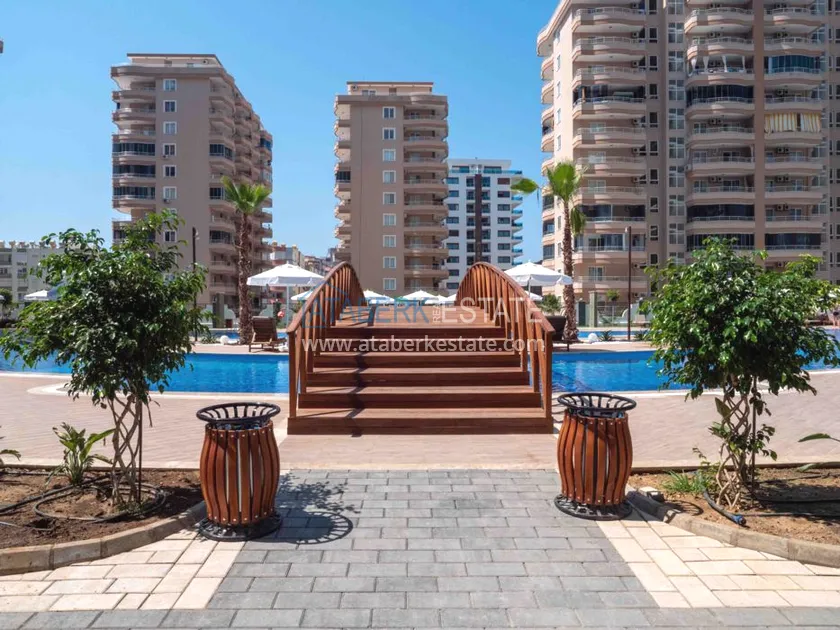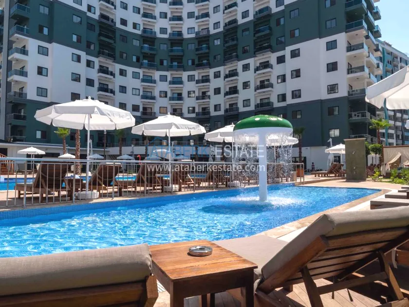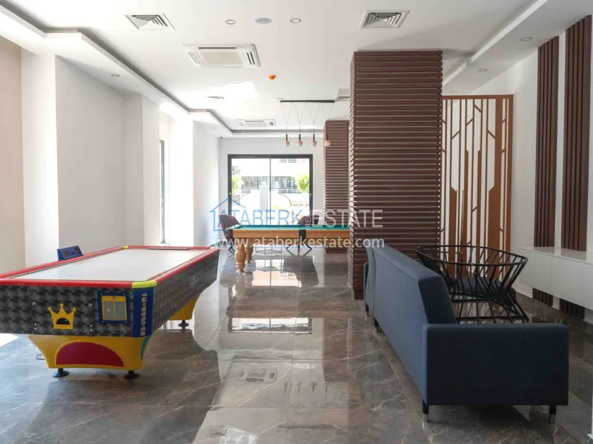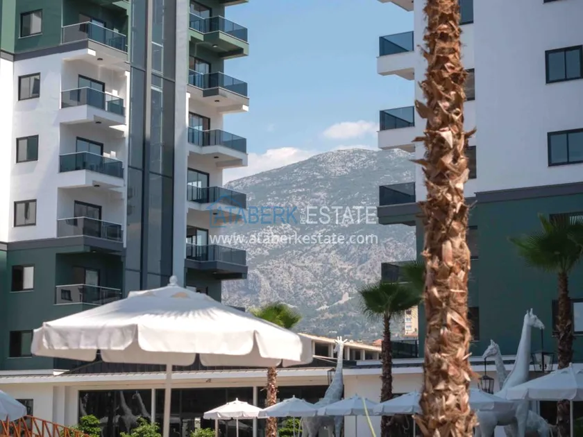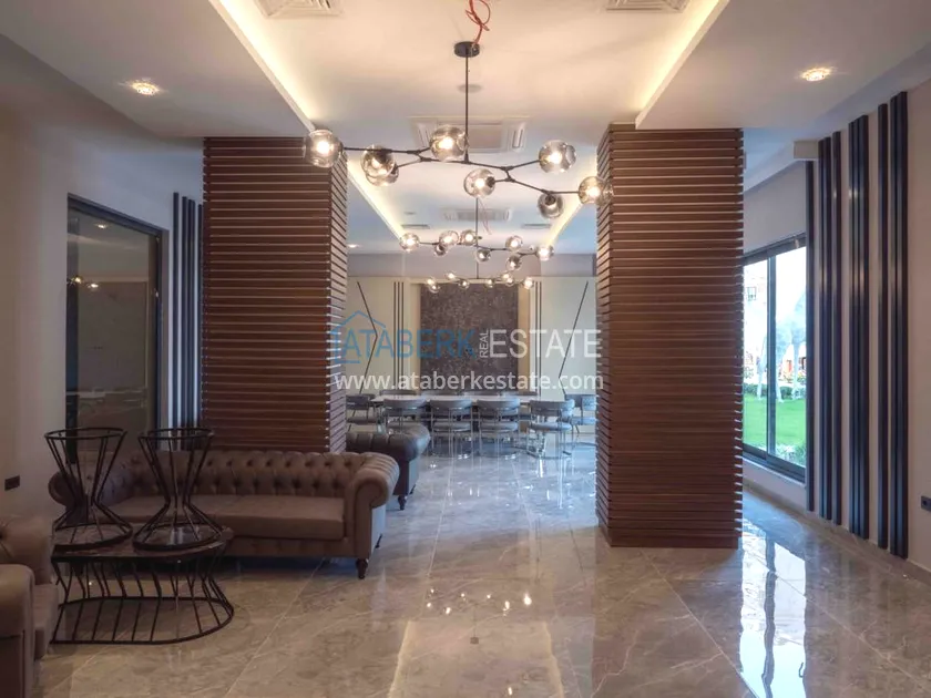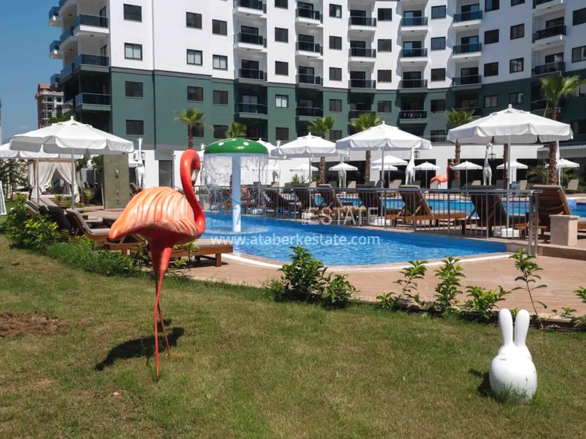 В резиденции два блока по 12 этажей, роскошная общая зона, богатая инфраструктура, профессиональное управление с высоким качество обслуживания. Айдат 416 лир в месяц. До побережья Средиземного моря 5 минут прогулочным шагом. Рядом находятся сетевые супермаркеты БИМ, ШОК, А101, Хасбул, рыбный ресторан, а также множество небольших кафе с европейской и национальной кухней, аптеки, городская поликлиника, банкоматы и остановка общественного транспорта.