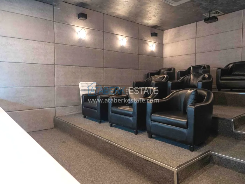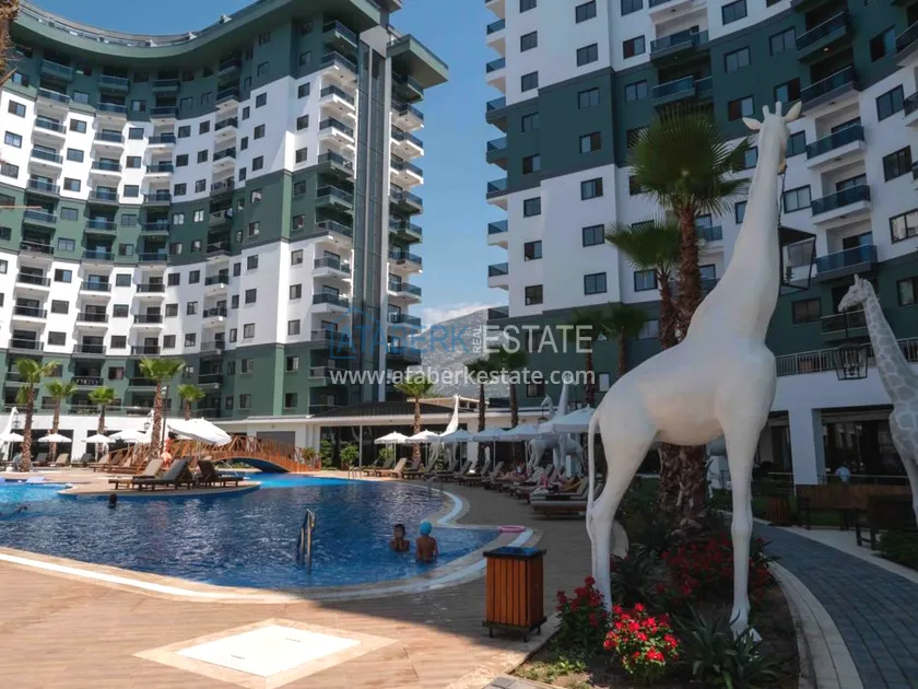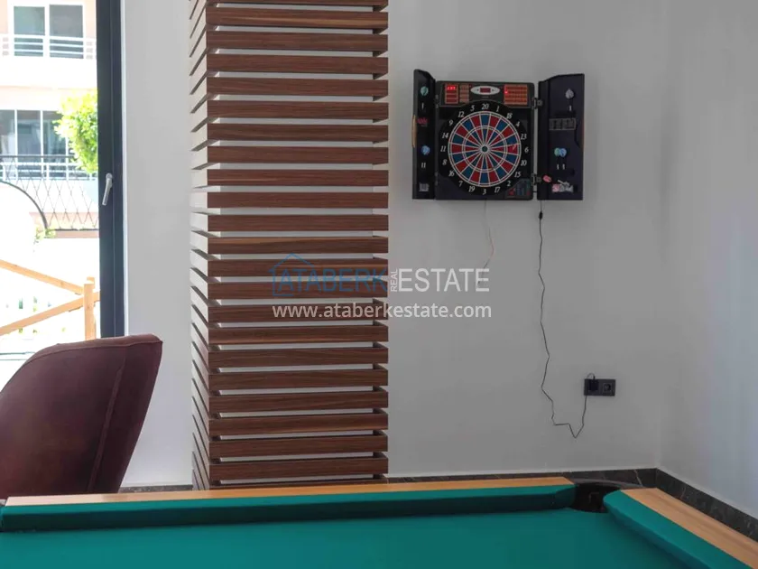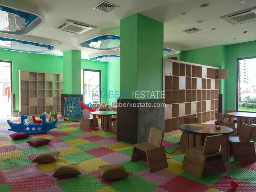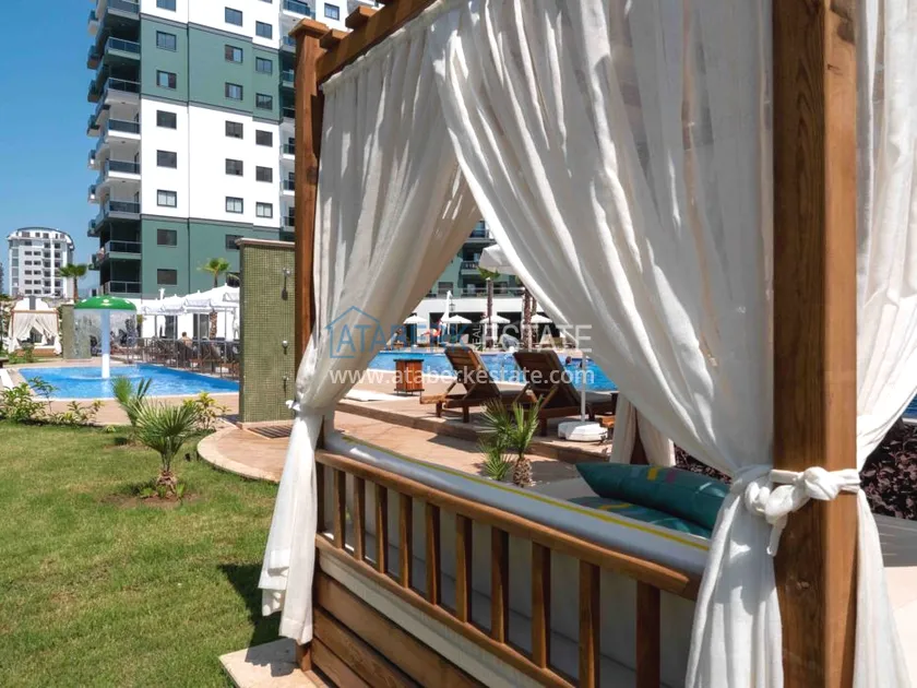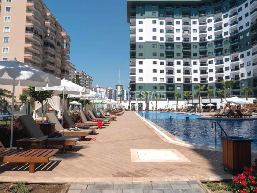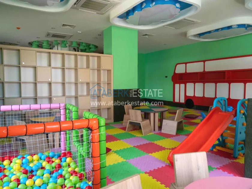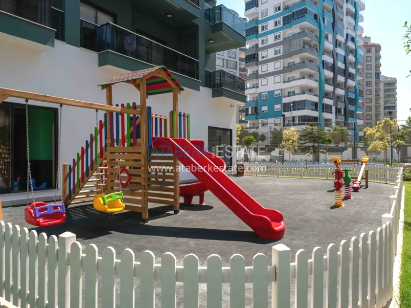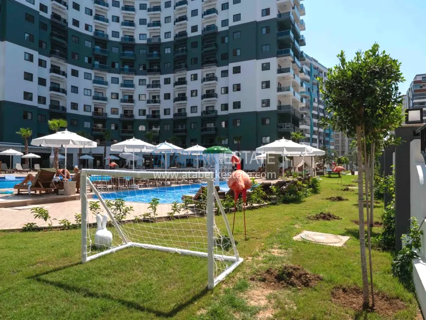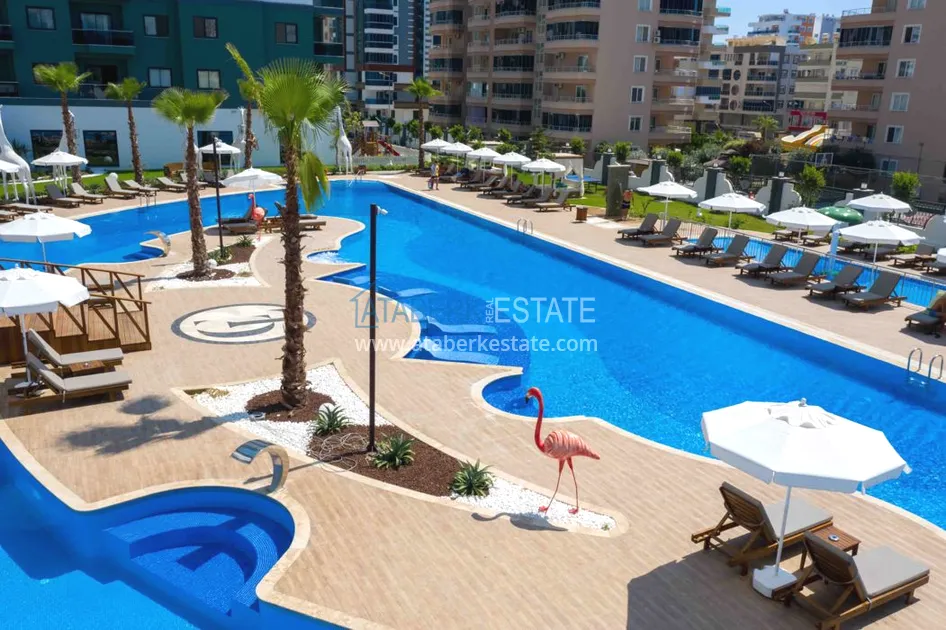В резиденции два блока по 12 этажей, роскошная общая зона, богатая инфраструктура, профессиональное управление с высоким качество обслуживания. Айдат 416 лир в месяц. До побережья Средиземного моря 5 минут прогулочным шагом. Рядом находятся сетевые супермаркеты БИМ, ШОК, А101, Хасбул, рыбный ресторан, а также множество небольших кафе с европейской и национальной кухней, аптеки, городская поликлиника, банкоматы и остановка общественного транспорта.