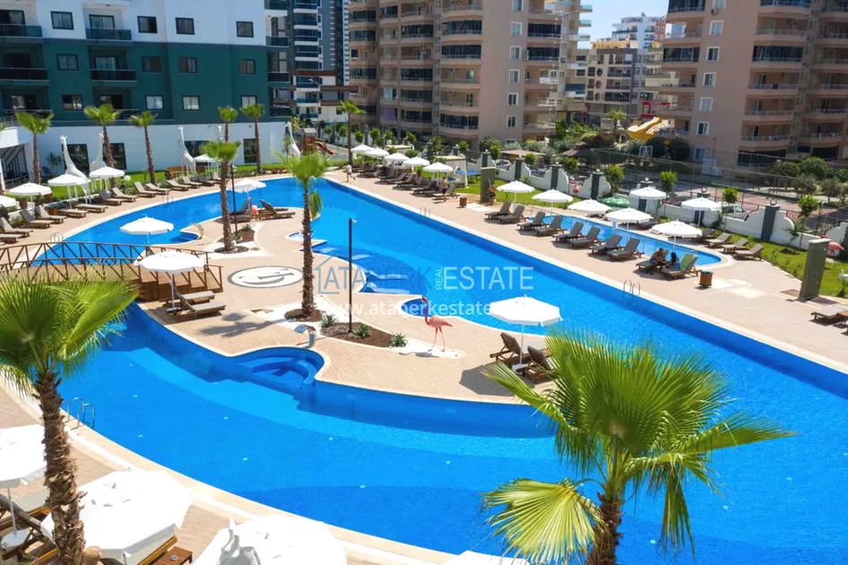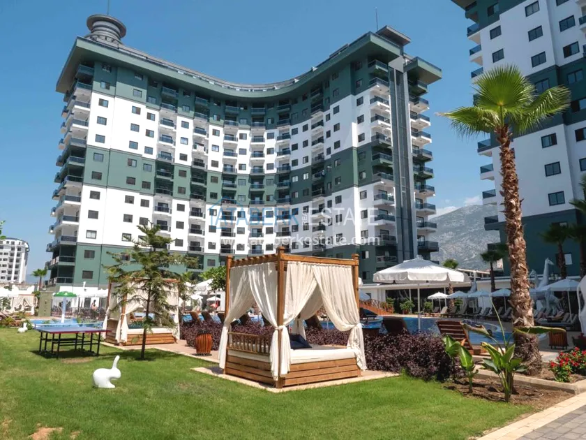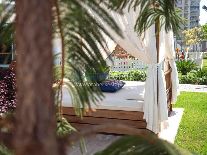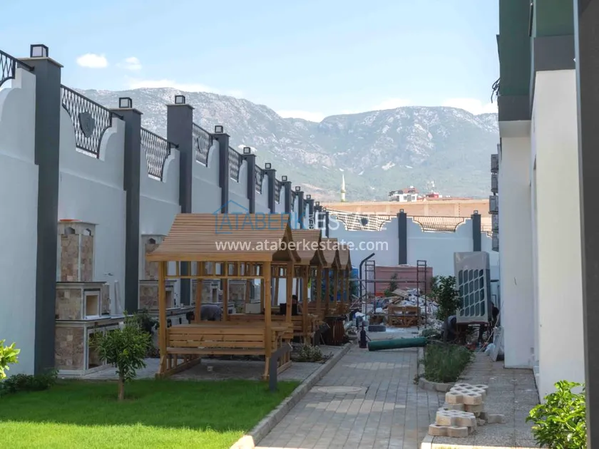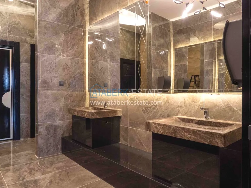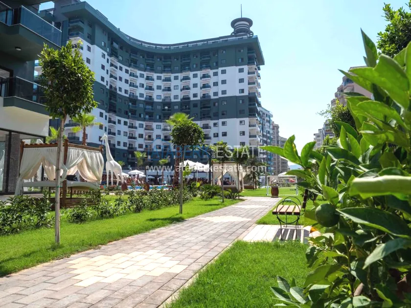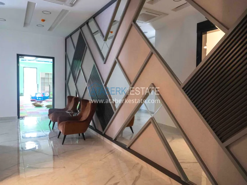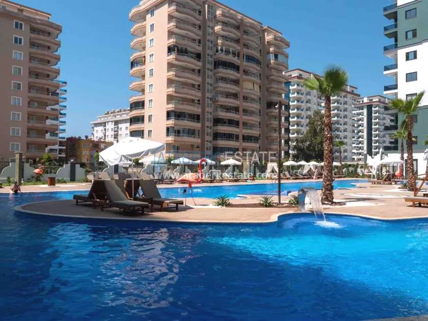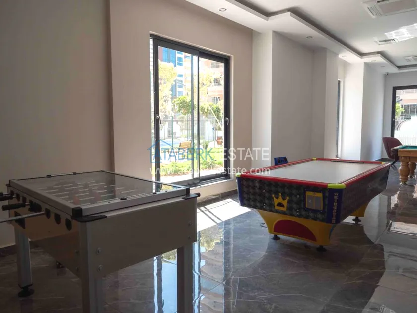 В резиденции два блока по 12 этажей, роскошная общая зона, богатая инфраструктура, профессиональное управление с высоким качество обслуживания. Айдат 416 лир в месяц. До побережья Средиземного моря 5 минут прогулочным шагом. Рядом находятся сетевые супермаркеты БИМ, ШОК, А101, Хасбул, рыбный ресторан, а также множество небольших кафе с европейской и национальной кухней, аптеки, городская поликлиника, банкоматы и остановка общественного транспорта.