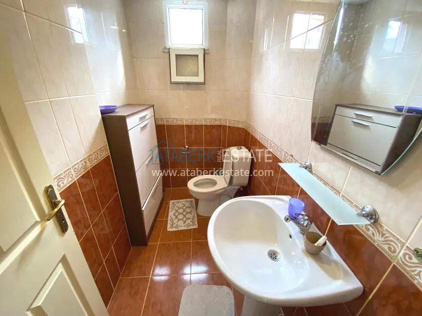 Предлагаемый вариант недвижимости расположен в уютном малоэтажном жилом комплексе - 5 жилых этаже и мансарда, на первом этаже находится кафе . У дома есть небольшая прилегающая территория с минимальной инфраструктурой. Айдат – 150 лир в месяц. В комплексе есть собственный бассейн, но он не работает по желанию жильцов. До побережья Средиземного моря около 300 метров. В радиусе 200 метров от дома есть магазины с товарами бытового и хозяйственного назначения, сетевые супермаркеты, несколько кафе, аптека.