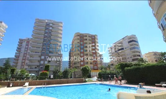 Находится квартира в уютном комплексе, который объединен с не менее уютным комплексом и данный союз имеет ряд преимуществ: два бассейна, удвоенная охрана комплекса, водные горки, мини футбол и еще массу всего интересного. Расположен жилой комплекс в 100 метрах от центральной улицы Барбаросса, рядом с домом есть ресторан русской кухни, возле в хода в дом расположен супермаркет «Шок», а до восхитительной набережной всего 5 минут прогулочным шагом. Айдат 250 лир в месяц.