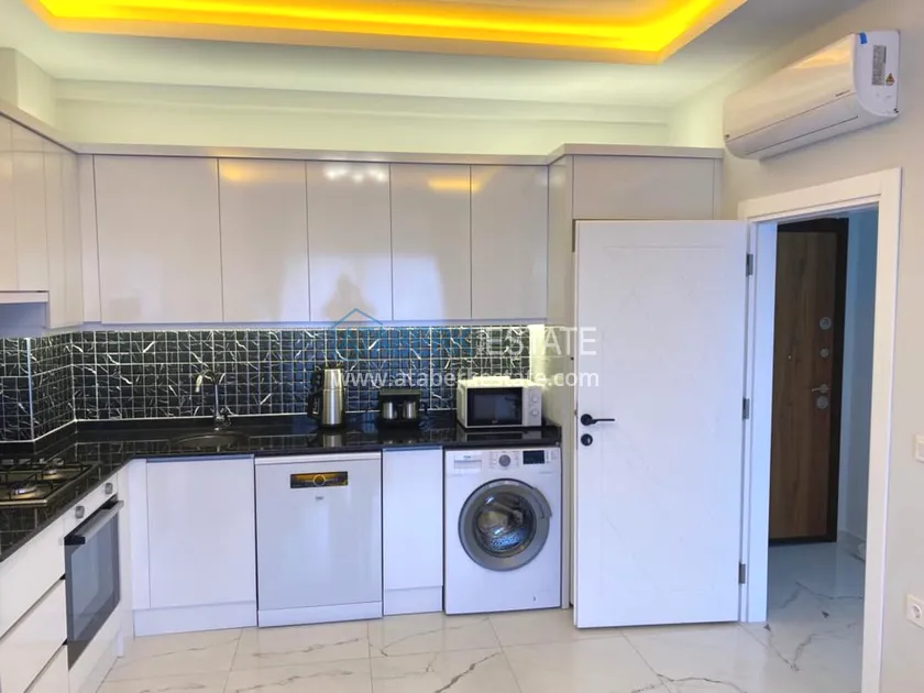 Жилой комплекс располагает хорошей инфраструктурой, находится на расстоянии 850 метрах от моря, включает один 5-этажный блок и закрытую территорию. предлагаемая квартира находится на 4 этаже, планировка 1+1 – прихожая, салон, кухня американского типа, спальня, ванная комната и балкон с видом на горы. Недвижимость выставлена на продажу в том виде, который представлен на фото.