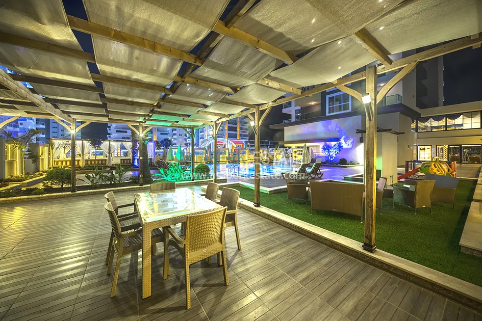 Комплекс относится к категории недвижимости комфорт-класса, состоит из одного 11- этажного блока и красивой благоустроенной прилегающей территории. Резиденция отличается превосходным европейским качеством, для Вашего комфортного отдыха здесь предусмотрено множество удобств. Всего в 300 метрах от дома, по аллее вниз, находится ближайший городской пляж, а до центральной улицы района – Барбаросса, всего 100 метров. Рядом с домом есть супермаркет А101, а также большое количество магазинов, кафе и ресторанов.