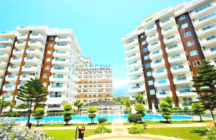 Апартаменты расположены в хорошем жилом комплексе, с богатой инфраструктурой и большой ухоженной территорией. Айдат составляет 300 лир в месяц. До ближайшего городского пляжа около 6 минут ходьбы. До ближайшего магазина 100 метров.