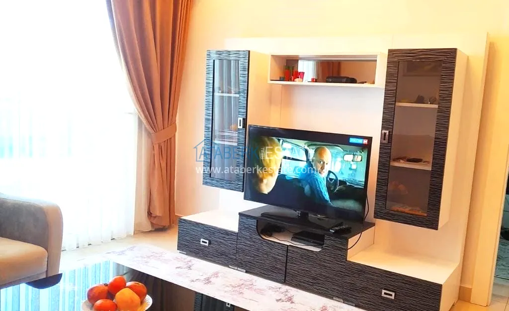 Квартира планировки 1+1 находится на первом жилом этаже, общая площадь составляет 65 м2. Данная планировка включает гостиную, объединённую с кухней американского типа, спальную комнату, совмещенный санузел и балкон. Апартаменты продаются в том виде, который представлен на фото