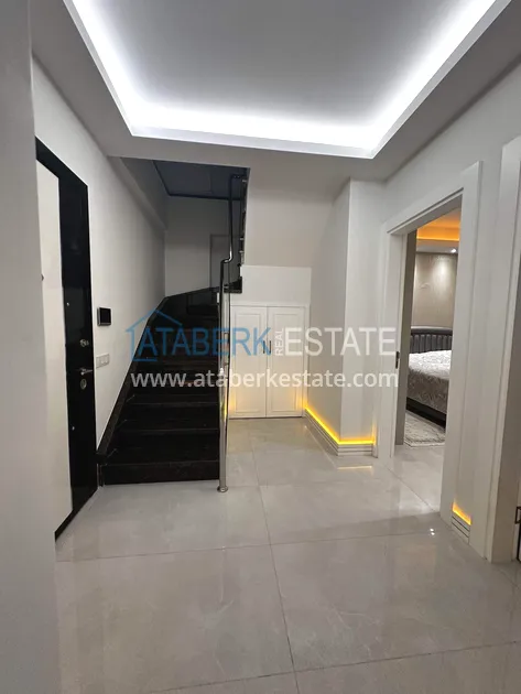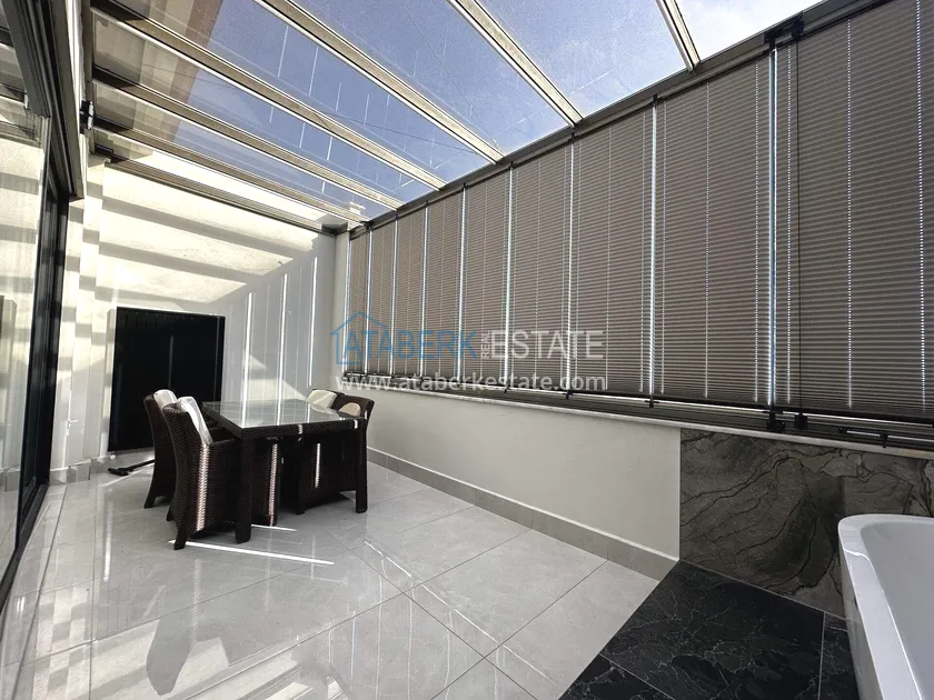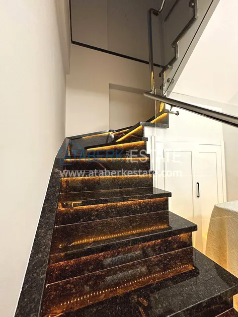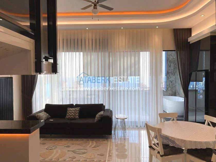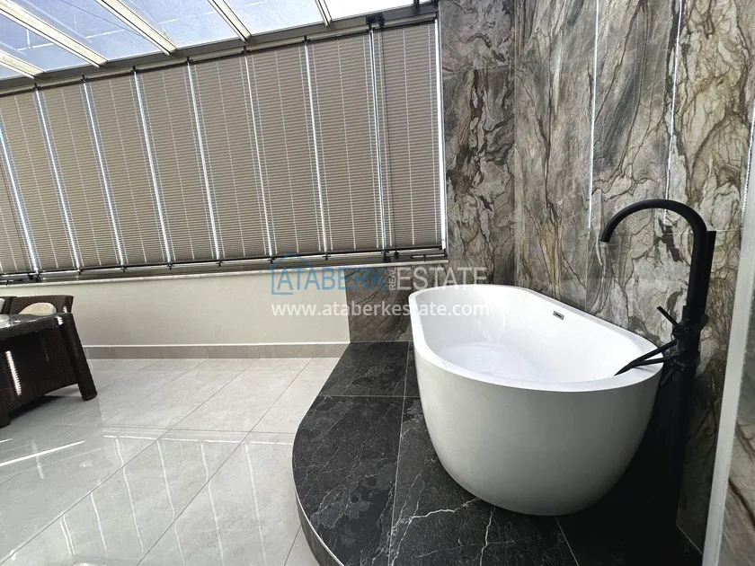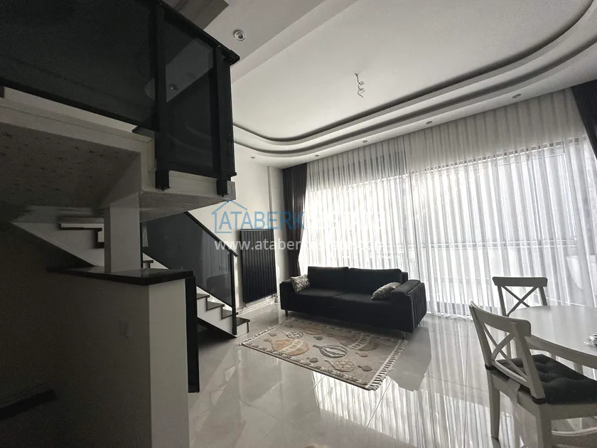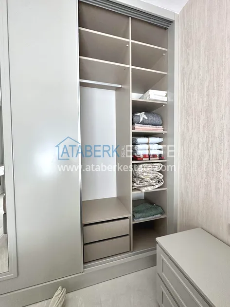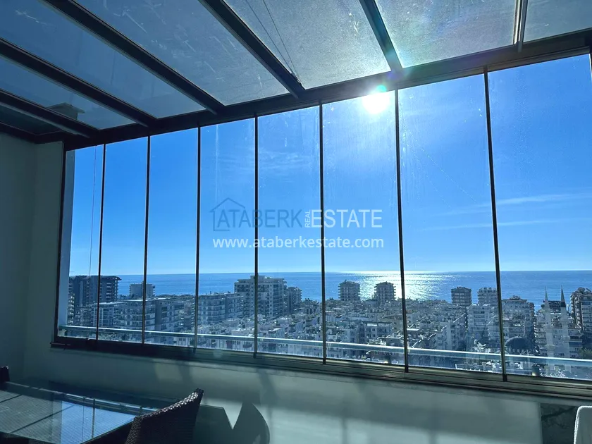 Квартира планировки 2+1 расположен на 12 этаже, общая площадь составляет 132,1 м². Пространство организовано на двух уровнях: салон с кухней открытого типа, две спальни, две ванные комнаты, также предусмотрены два больших застеклённых балкона, которые можно использовать как дополнительную жилую зону или пространство для отдыха с видом на море. Квартира продаётся с мебелью и техникой, полностью готова к проживанию.