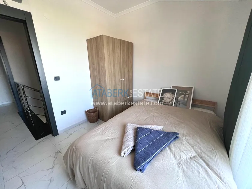 Компактный уютный дуплекс планировки 2+1 площадью 81 м2, этаж расположения верхний – 12. На двух уровнях разместились: Первый этаж – гостиная с кухней открытого типа и выходом на балкон, а также гостевой санузел; Второй этаж – две спальни, общая ванная комната и просторная открытая терраса. Из окон и бакланов открывается восхитительный панорамный вид на горы и море. Квартира выставлена на продажу в том виде, который представлен на фото – вся мебелью и техника в превосходном состоянии.