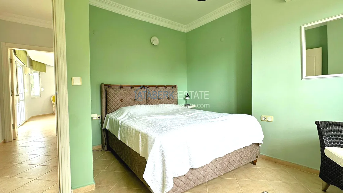 Вилла двухэтажная, планировки 4+1 общей площадью 220 м² расположена на участке земли в 500 м². Внутри вас ждёт просторная гостиная с американской кухней, четыре спальни, два санузла, крытая веранда и терраса с панорамными видами. Недвижимость предлагается полностью меблированной и готова к заселению. На территории есть собственный бассейн, парковка для авто и ухоженный сад с зелёными насаждениями, где можно приятно проводить время всей семьёй.