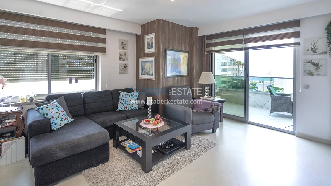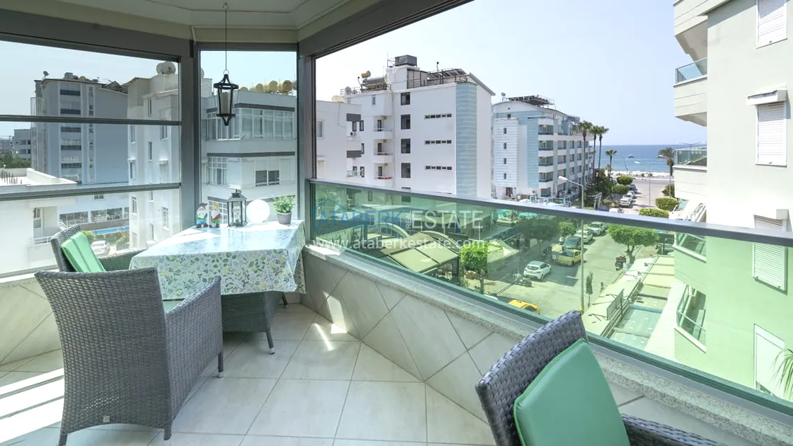 Предлагаемая недвижимость расположена на 4 этаже 5-этажного дома, окна выходят на южную сторону, вид открытый на море. Планировка квартиры 2+1 общая площадь составляет 100 м2 - коридор, гостиная, американского типа кухня, две спальни, совмещенный санузел и уютный застекленный балкон. В ванной установлена система «тёплый пол» для дополнительного комфорта. На окнах — электрические автоматические рольставни, которые обеспечивают удобство и безопасность. Апартаменты выставлены на продажу со всей мебелью и бытовой техникой – всё как на фото.