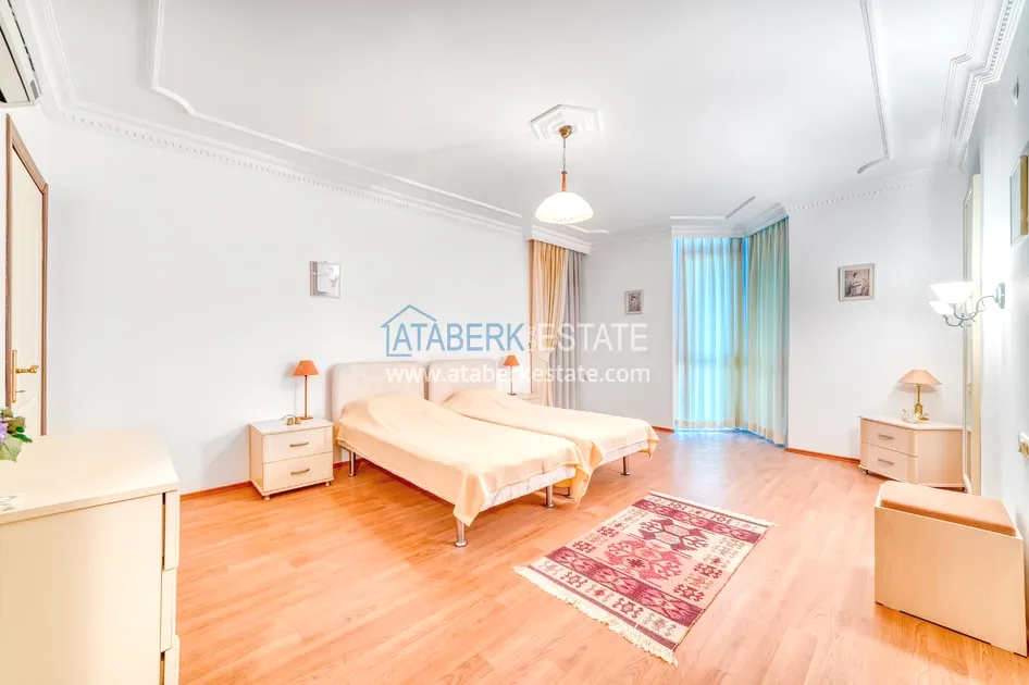 Квартира порадует вас своей просторностью и удобной планировкой. Планировка 4+1 площадь 220 м2, этаж расположения второй, ориентирована на юго-запад. Внутри вы найдете три спальни, две из которых имеют личные ванные комнаты, так же есть большая ванная комната с джакузи и еще один гостевой санузел (там раковина и унитаз). В квартире имеется две гостиные, большая прихожая-холл и отдельная кухня. По периметру квартиры установлены радиаторы отопления, а вот котел расположен в подсобном помещении комплекса (по типу небольшого депо, где так же можно хранить вещи). На всех окнах и дверях установлены рольставни, в комнатах отдыха (спальни, гостиные) на полу уложен ламинат. Все это создает комфортную и функциональную обстановку для вашей семьи.