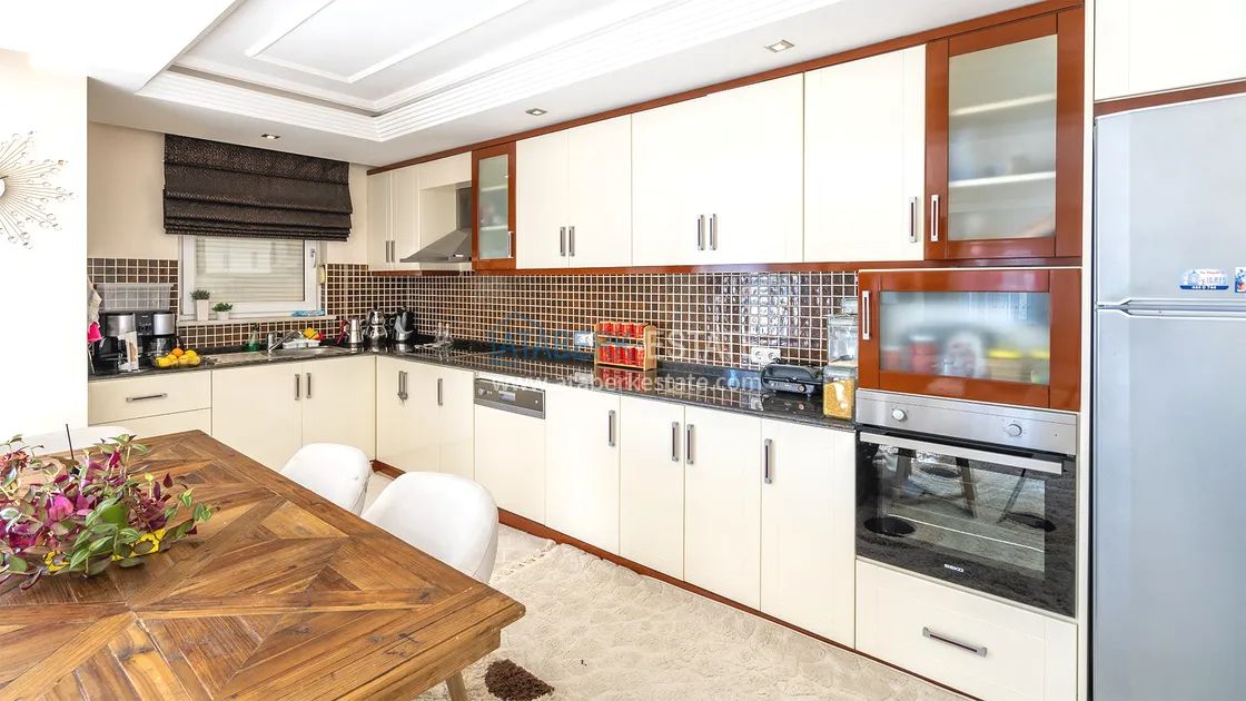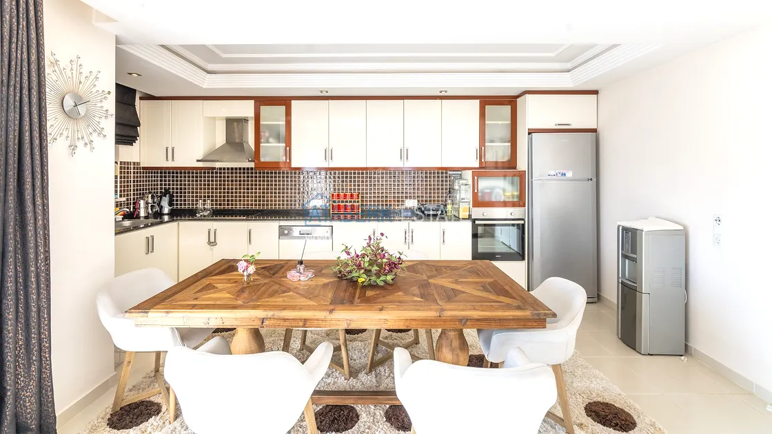 Предлагаемая квартира планировки 2+1 расположена на втором этаже. Простор — 120 м², салон, кухня открытого типа, две спальни, два санузла и два балкона создают максимум удобства для семьи. Квартира меблирована, полностью готова к проживанию.