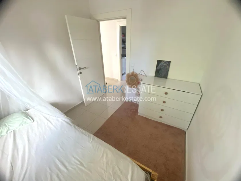 Квартира планировки 2+1 общей площадью 89 м² расположена на втором этаже и предлагается к продаже с мебелью. Планировка включает гостиную с кухней открытого типа, две спальни, ванную комнату и балкон. Пространство функциональное и хорошо организованное, квартира аккуратная и готова к проживанию без дополнительных вложений. Формат подходит как для постоянного проживания, так и для использования в курортный сезон.