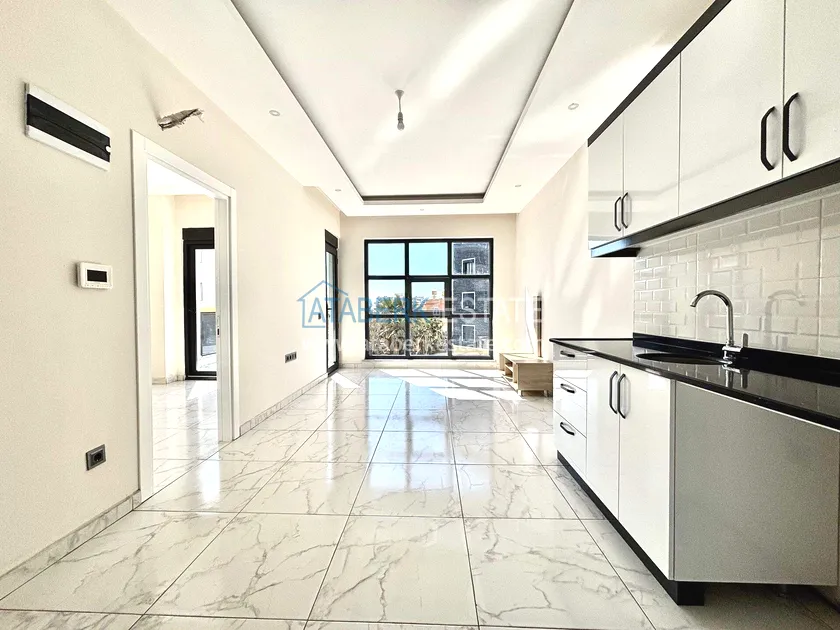 Квартира планировки 1+1 расположена на 2 этаже и включает салон с кухней американского типа, одну спальню, ванную комнату и балкон. Общая площадь составляет 50 м². Объект абсолютно новый, без следов эксплуатации, что даёт ощущение чистого пространства и позволяет обустроить интерьер под себя с нуля. Южная ориентация обеспечивает хорошее естественное освещение в течение дня, добавляя уюта и визуального простора.