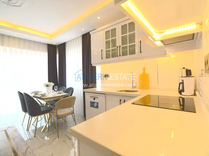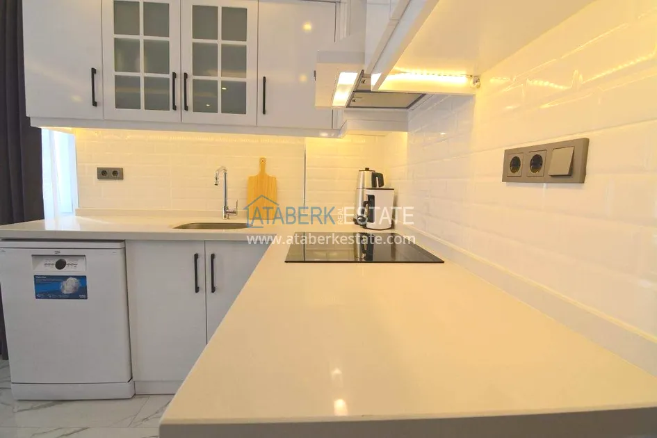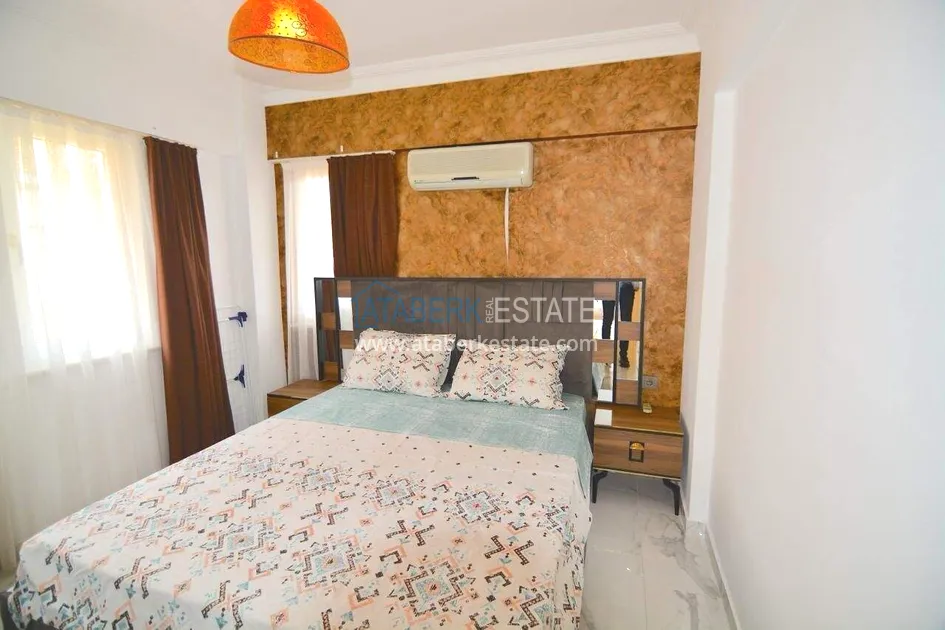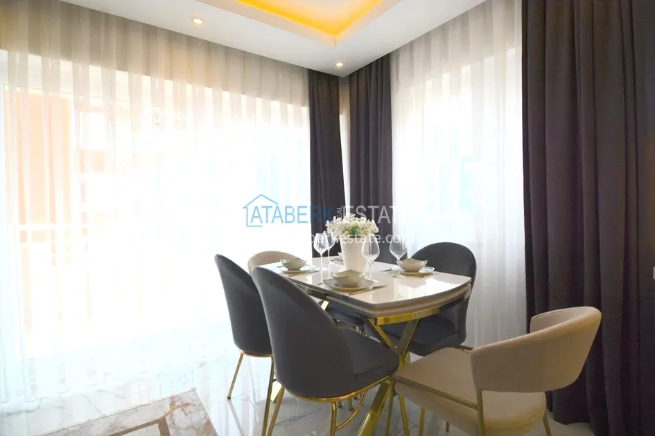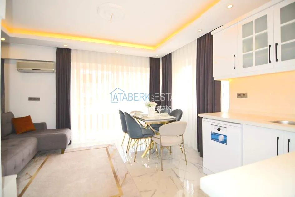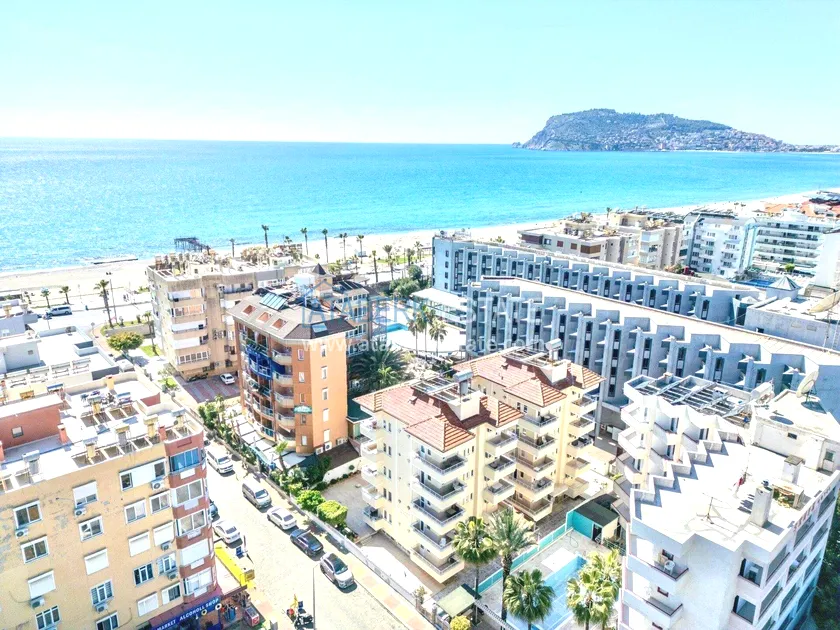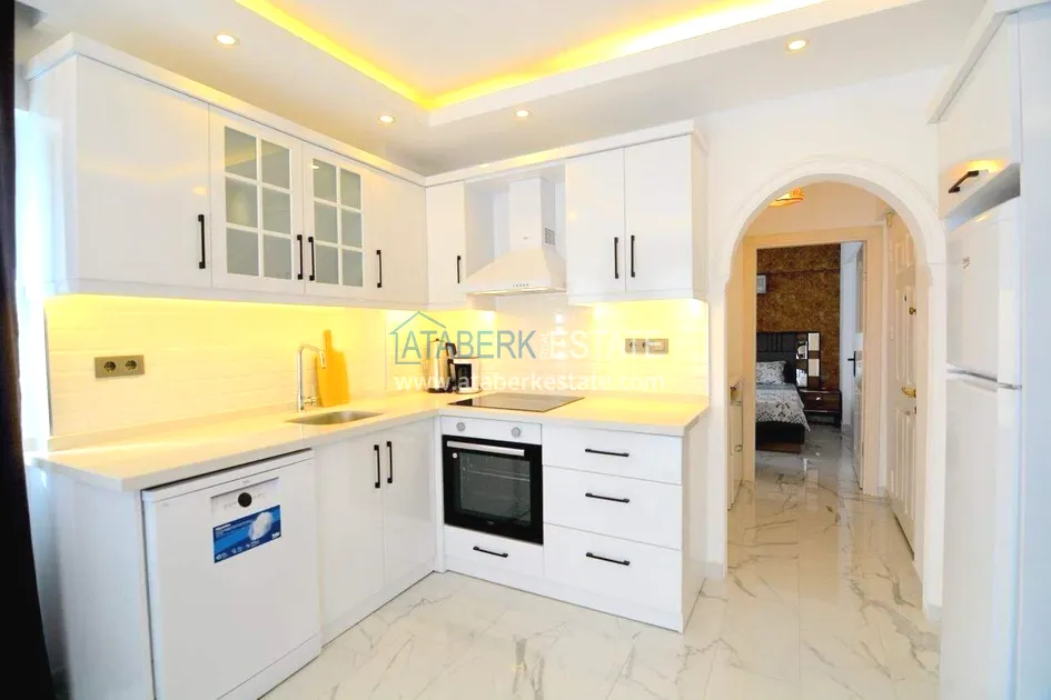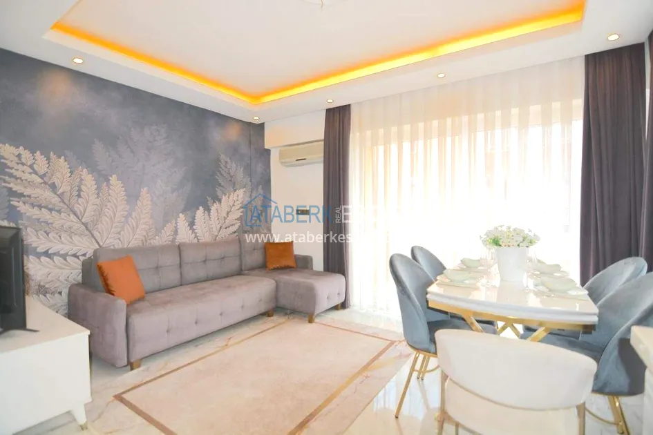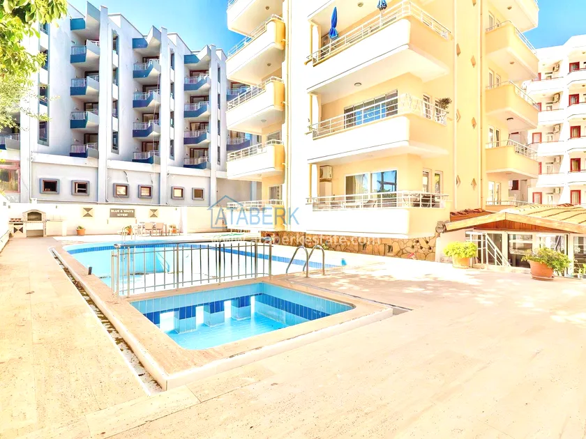 Квартира планировки 1+1 расположена на 4 этаже и включает салон с кухней американского типа, одну спальню, ванную комнату и два балкона. Общая площадь составляет 55 м². Объект полностью меблирован и укомплектован техникой. Из квартиры открывается вид на море, а наличие двух балконов делает пространство более функциональным и комфортным для повседневной жизни.