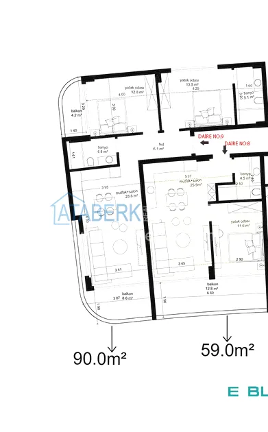 В продаже осталась квартира на первом этаже, планировки 2+1, площадью 90 м² - гостиная, кухня американского типа, две спальни, две ванные комнаты и два балкона, один полностью остеклен. Квартира частично меблирована.