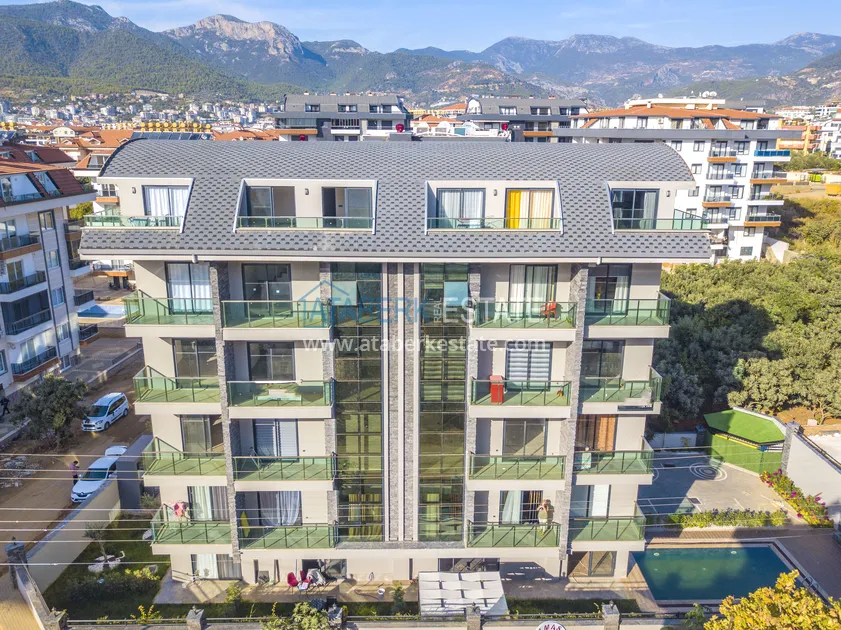 Новостройки Алании! Предлагается к продаже двухуровневая квартира с полной чистовой отделкой и красивым открытым видом на горы и историческую крепость.