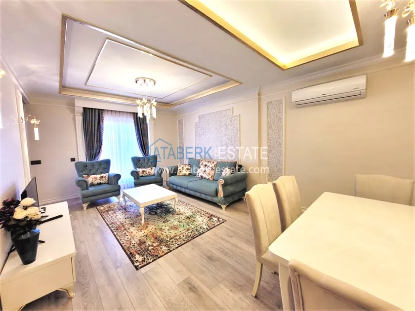 Квартира планировки 2+1 находится на 6 этаже, ориентирована на восток, общая площадь составляет 100 м2. В данную планировку входит: салон, совмещённый с кухней американского типа, две спальные комнаты, две ванные комнаты и балкон. Апартаменты выставлены на продажу со всей мебелью и техникой как на фото.