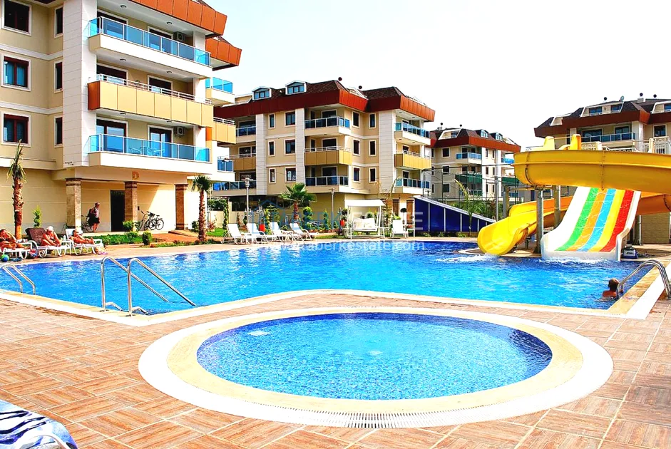 Предлагаемая квартира находится в современном, благоустроенном комплексе с большой парковой зоной, фруктовыми садами и декоративными фонтанами, а также с самодостаточной внутренней инфраструктурой. В комплексе 6 блоков и хорошая система управления. Расположен ЖК всего в 400 метрах от пляжа, буквально в минутной ходьбе от ТЦ Кочташ, в 300 метрах находится государственная больница, до супермаркета Метро 650 метров, а до ТЦ Аланиум 1350.