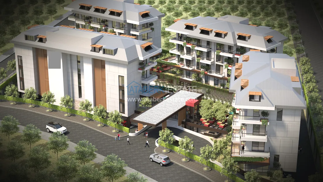 В престижном европейском районе Алании в некотором отдалении от береговой линии, ближе к горам среди апельсиновых садов, завершается строительство комфортабельного жилого комплекса с частной территорией и разнообразной инфраструктурой. В комплексе 4 блока по 4 этажа. Предлагаемая недвижимость находится на 1 этаже, имеет планировку 1+1 и площадь 55 м2. Данная планировка предлагает наличие гостиной, совмещенной с кухней открытого плана, одной спальни, ванной комнаты и просторного балкона с видом на бассейн и горы. В апартаментах выполнена полная чистовая отделка, установлен кухонный гарнитур и полностью укомплектован санузел.
