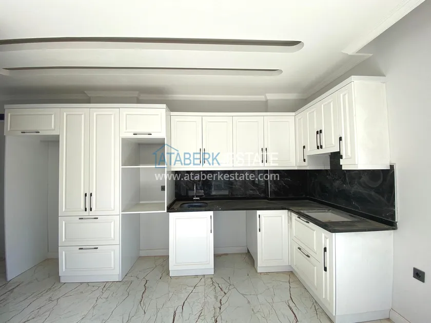 Квартира планировки 2+1 находится на 4 этаже, общая площадь составляет 95 м2. На данной площади разместились: гостиная, совмещенная с кухней открытого плана, 2 спальни, ванная комната и балкон с красивым открытым видом на горы и территорию комплекса. В стоимость включена кухонная встроенная мебель и полностью укомплектованная ванная комната.
