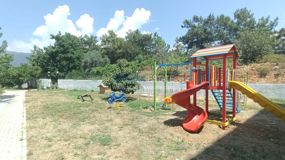 Жилой комплекс состоит из трех 5-этажных блоков и достаточно большой прилегающей территории с красивым и ухоженным садом. Из инфраструктуры большой открытый плавательный бассейн с отдельной детской зоной. Айдат – 200 лир в месяц.