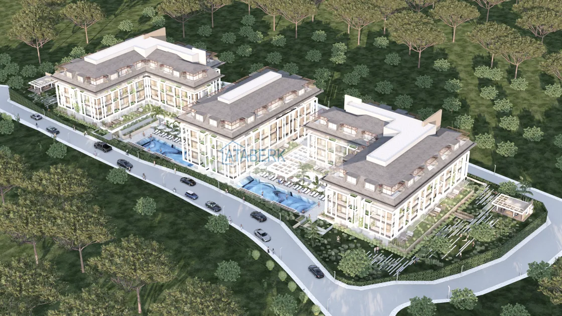 ЖК включает 3 блока по 4 этажа на 128 квартир. К продаже представлены следующие варианты планировок: 1+1 площадью от 58 до 70 м2; 2+1 площадью 81-85 м2, садовые дуплексы 2+1 72-85 м2 и пентхаусы 2+1, 3+1 и 4+1 от 117 до 194 м2.