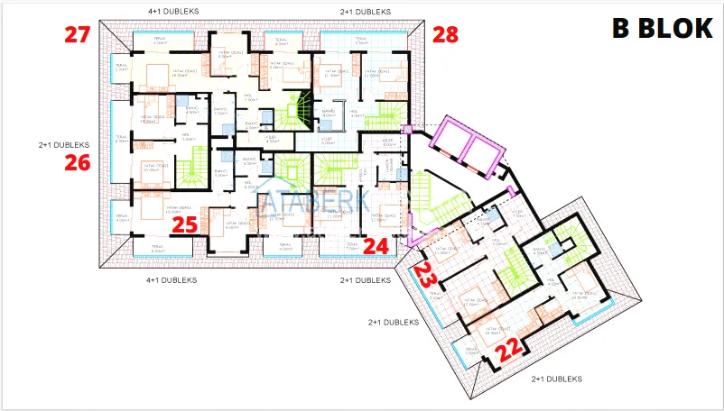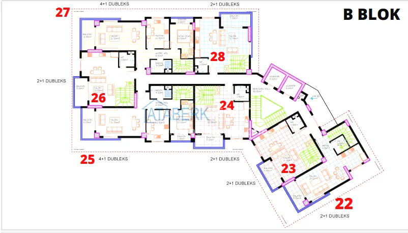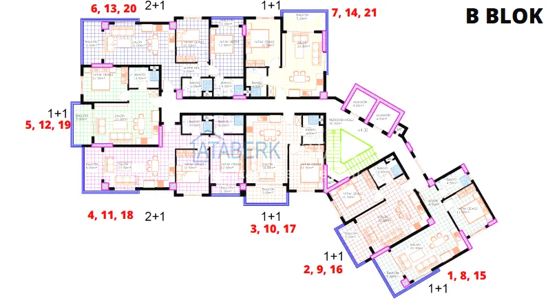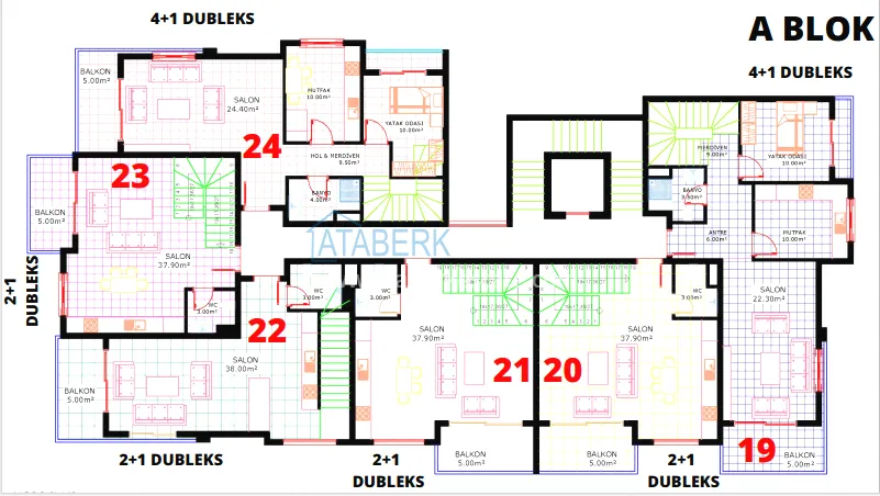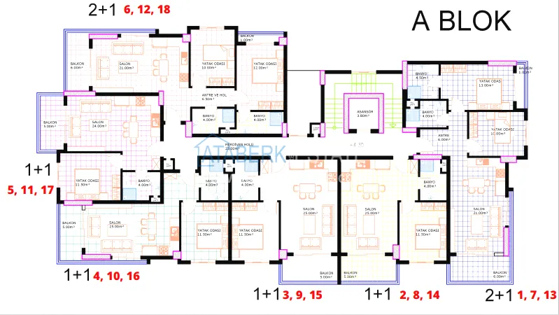 К продаже представлены только два блока - квартиры планировки 1+1 площадью 51 и 53 м2, 2+1 площадью 74 м2 а также пентхаус-дуплексы планировки 2+1 и 4+1 площадью от 102 до 172 м2. Квартиры будут сдаваться в качественной чистовой отделке с укомплектованными санузлами и встроенным кухонным гарнитуром.