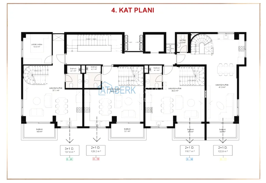 В популярном европейском районе Алании всего в 3 минутах ходьбы от побережья Средиземного моря в ноябре 2023 года стартует строительство уютного жилого комплекса, который будет состоять из одного 5-этажного дома с небольшой прилегающей территорией и лаконичной внутренне инфраструктурой. Всего в проект 20 апартаментов – 1+1, 2+1 и дуплексы 2+1 и 3+1. Площадь варьируется от 59 до 138 м2.