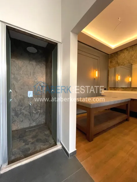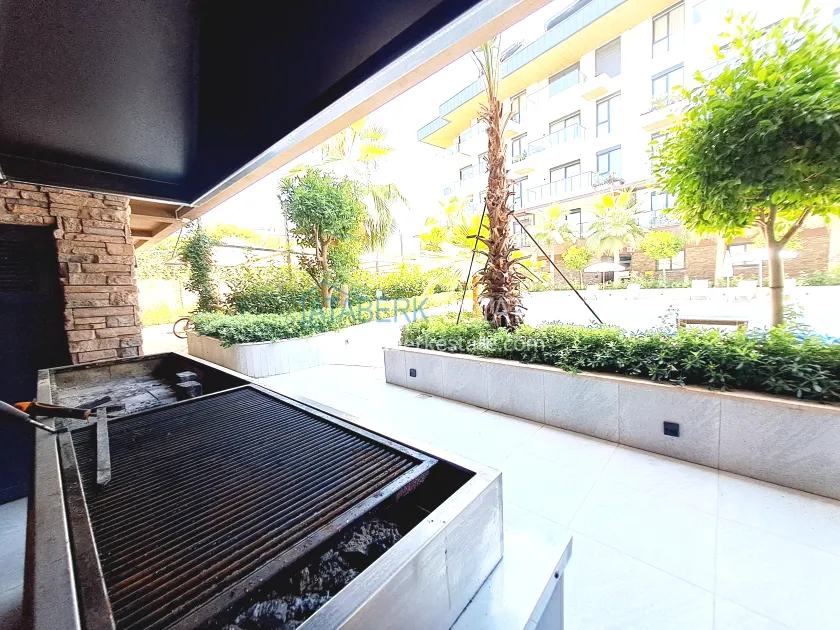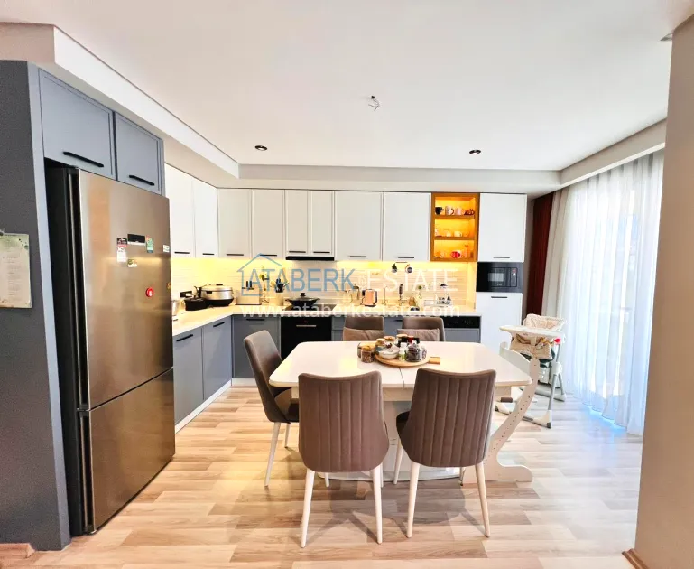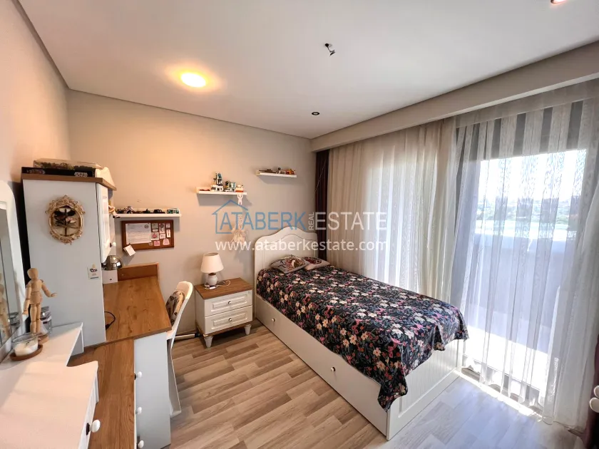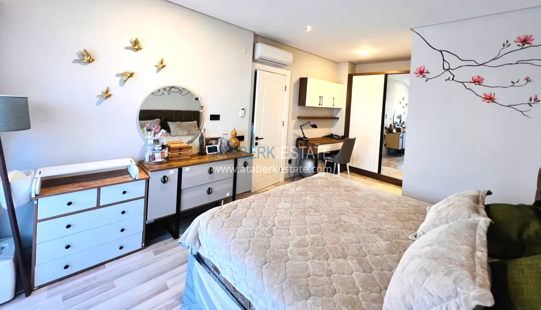 Квартира двухуровневая планировки 3+1 площадью 140 м², с отдельной кухней, гостиной, тремя спальными, тремя ванными комнатами, четырьмя балконами и кладовой. В квартире установлены кондиционеры во всех комнатах, на полу ламинат, установлена система тёплого пола. Из окон открывается живописный вид на горы. Продаётся с мебелью и техникой марки BOSCH - можно заехать сразу.