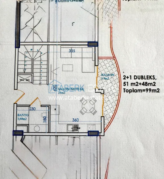 Дуплекс планировки 2+1 продаётся без мебели, с качественной чистовой отделкой. В планировке предусмотрены салон с кухней открытого типа, две спальни, два санузла и два балкона, что делает пространство удобным для семьи или комфортного проживания с разделением зон. Комплектация апартаментов: входная стальная дверь, видеодомофон, встроенная кухонная мебель, встроенный шкаф в коридоре. В стоимость также включён полный комплект бытовой техники - холодильник, посудомоечная машина, варочная поверхность, духовой шкаф, вытяжка и стиральная машина. В каждой комнате установлен кондиционер. Санузлы полностью укомплектованы, предусмотрен подогрев полов и электрический водонагреватель.