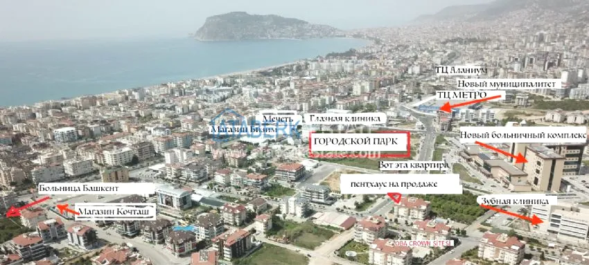 В европейском районе Оба -новом центре города Алании, на продаже от собственника двухуровневая квартира с тремя спальнями- пентхаус, раположенный на юго-восточной стороне здания.