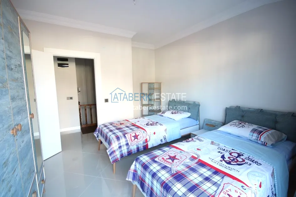 Все квартиры планировки 3+1, расположены на верхних этажах дома. Часть квартир имеют вид на море, другая на горы. Один из пентхаусов продается меблированный, он же и представлен на фото. В стоимость апартаментов, которые выставлены на продаже без мебели, включено: кухонный гарнитур с гранитной рабочей поверхностью, укомплектованные санузлы, кондиционеры, водонагреватель, на окнах внешние ролеты.