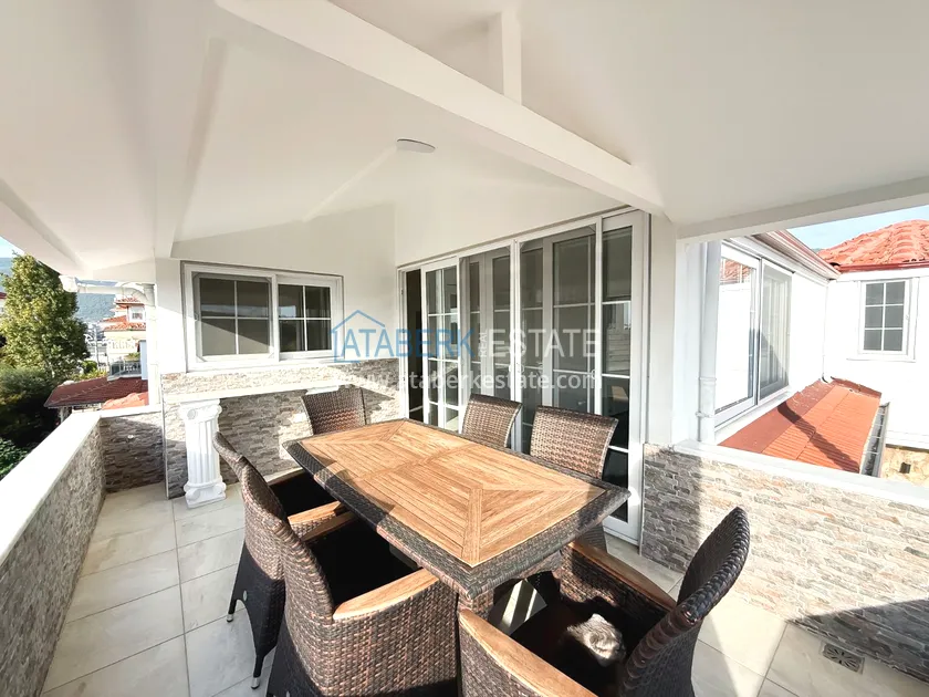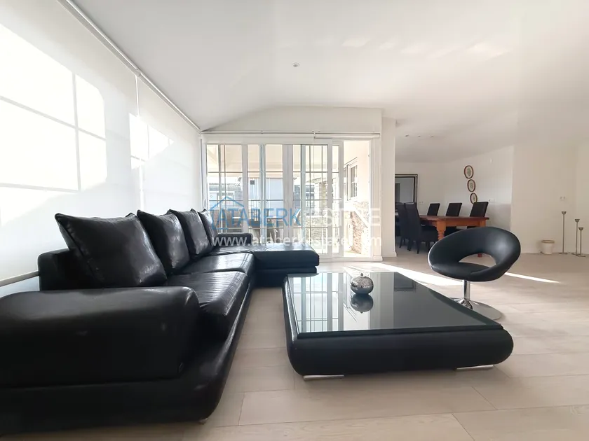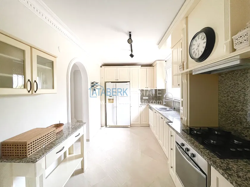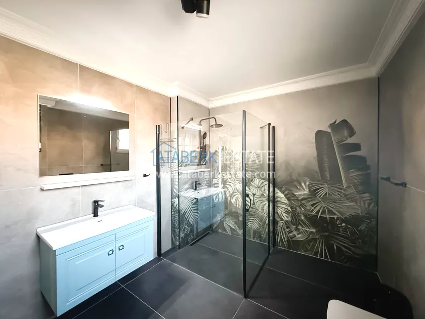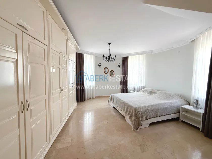 Эта вилла словно создана для комфортной жизни и отдыха всей семьёй. Просторные комнаты и продуманная планировка обеспечивают максимум удобства. Она трёхуровневая формата 5+3 площадью 400 м2. В планировке предусмотрены три салона и кухни, пять спален, шесть ванных комнат, балконы и фитнес-комната. Основная жилая часть дополнена отдельным гостевым блоком 1+1, а также изолированным офисным помещением 1+1, что делает объект особенно удобным для большой семьи или совмещения проживания с работой. Вилла ориентирована на комфорт круглогодичного проживания, продаётся полностью меблированной.