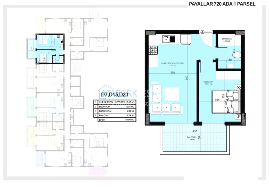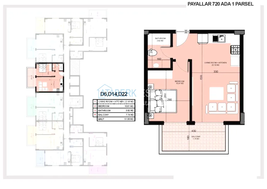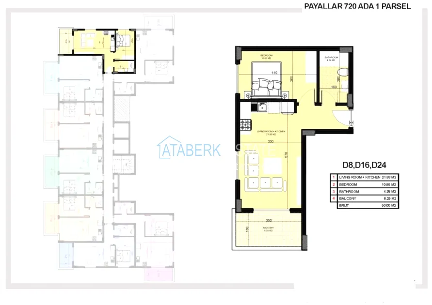 Проект реализуется в живописном уединенном месте на расстоянии 1 км от побережья Средиземного моря. Строительство ведет компания с безупречной репутацией. В проекте один пятиэтажный блок на 33 квартиры – двухкомнатные 1+1 площадью 50-60 м2 и пентхаусы 2+1 площадью 107-126 м2. Также проектом предусмотрена закрытая компактная, но функциональная территория с необходимым комплексом услуг для более комфортного проживания.