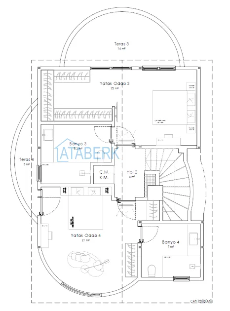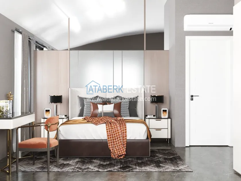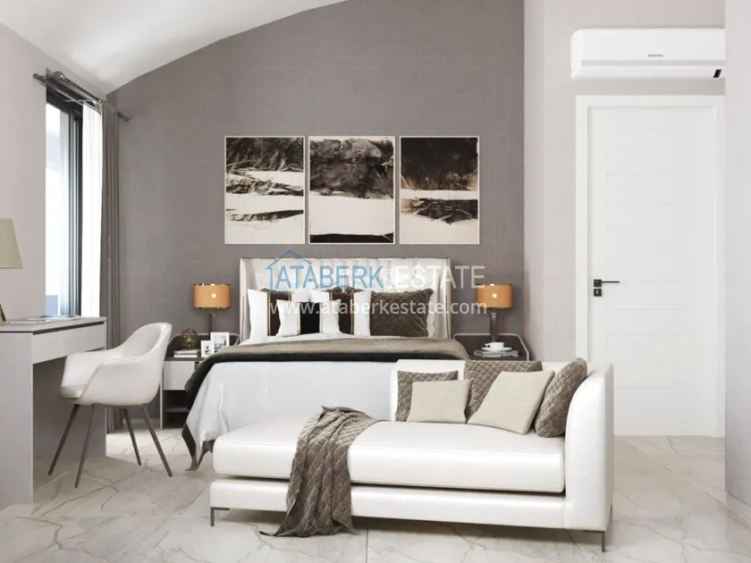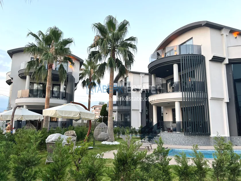Комплекс стоится на участке площадью 2625 м2, состоит из 7 вилл, каждая имеет частную территорию с зонной для барбекю и собственный бассейн. Все виллы трехэтажные, планировки 4+1, площадью 200 м2. На первом уровне гостевая зона – салон с камином, кухня американского типа, санузел и выход на террасу. На втором и третьем спальные зоны – 4 спальни, в каждой имеется ванная комната и на каждом уровне есть по два балкона. В стоимость включена качественная чистовая отделка, встроенная кухонная мебель и полностью укомплектованное санузлы.