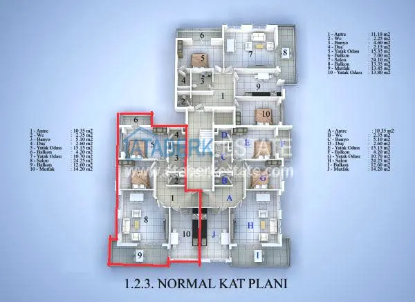 На продаже от компании Ataberk Estate трехкомнатные апартаменты с видом на море и горы. Квартира находится в комплексе с бассейном в районе Тосмур всего в 800 метрах от моря.